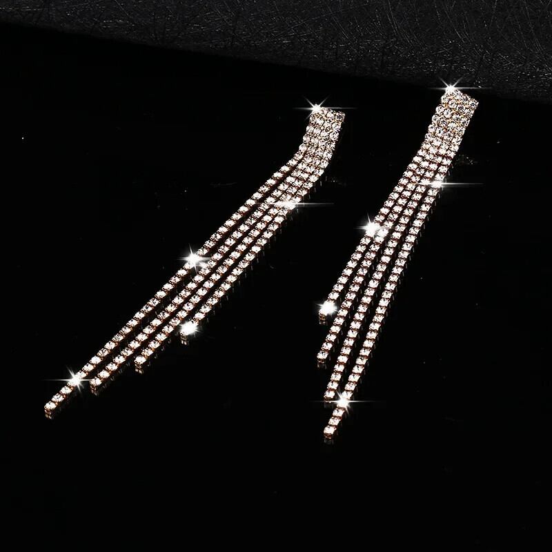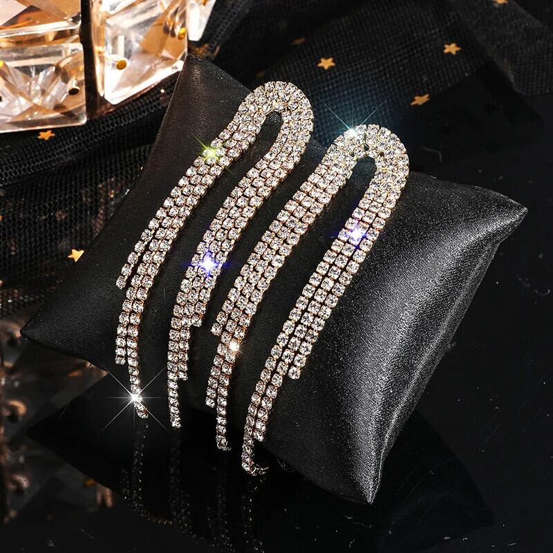 送料無料 高級ラインストーンクリスタルロングテルイヤリング女性ブライダルダングリングイヤリングパーティーウェディングジュエリーギフト 指輪 AE778878863354960510