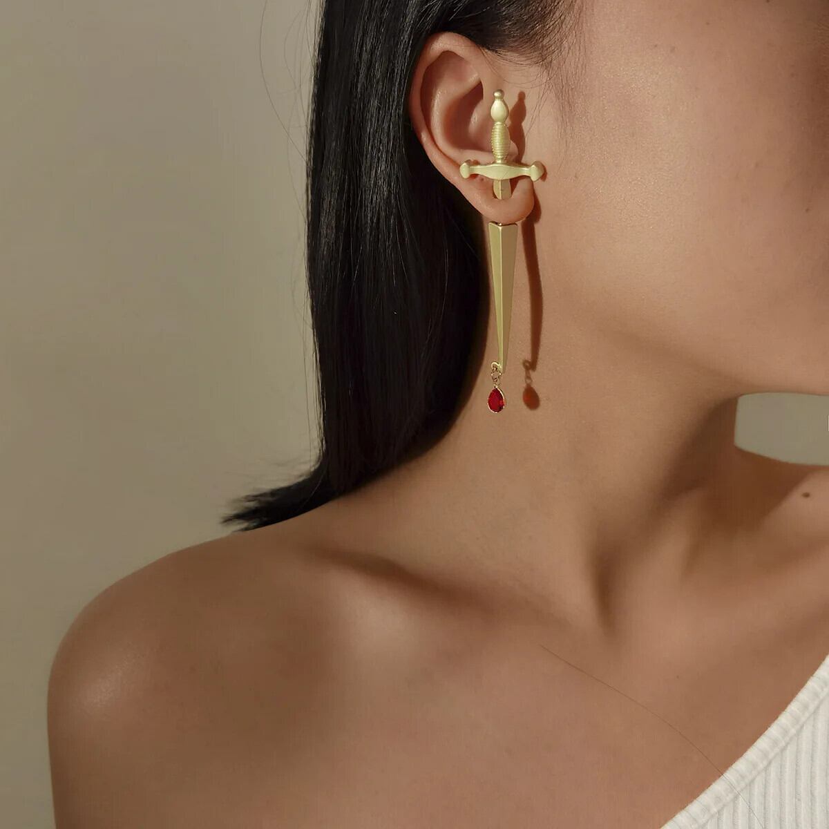 送料無料 1PC クールロングソードイヤリングパンク耳フープレッドウォータークロスブラブライヤリングゴシック神秘的なユニークなイヤリング 指輪 AE778878868683286614