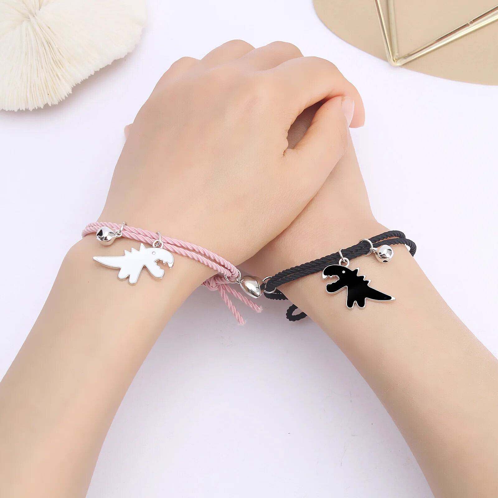 送料無料 1 ペア漫画恐竜磁気カップルブレスレット女性男性かわいい動物友情弾性ロープブレスレット愛好家ジュエリーギフト エラスティック 伸縮 大人ガーリー スウィート キュート カジュアル AE778878842647981976