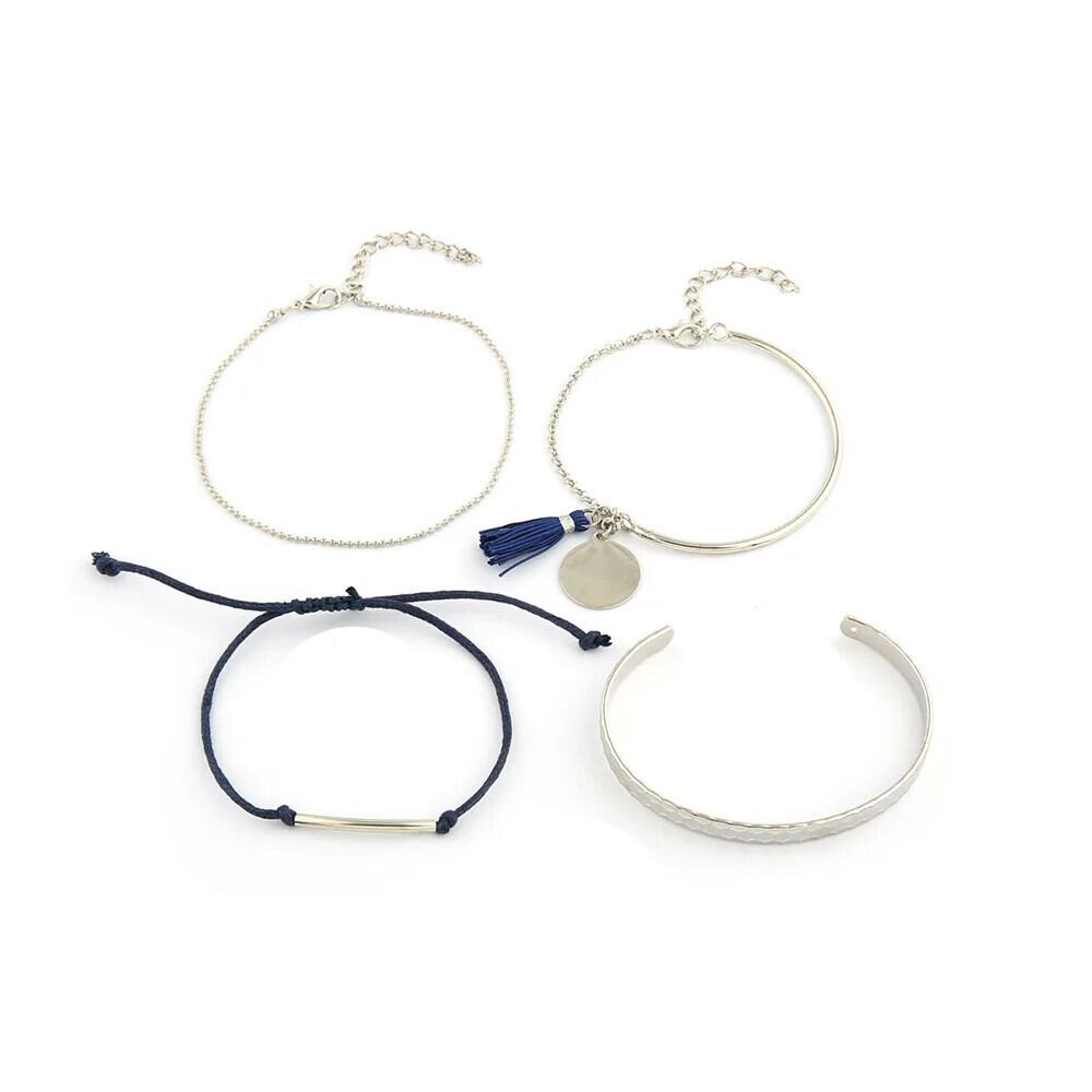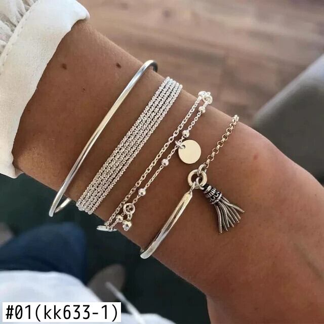 送料無料 4 ピース/セット自由奔放に生きる幾何学的な電話ブレスレット女性多層腕輪チャームパーティー結婚式ビーチジュエリーセットアクセサリーギフト マルチレイヤー AE77887888250807827