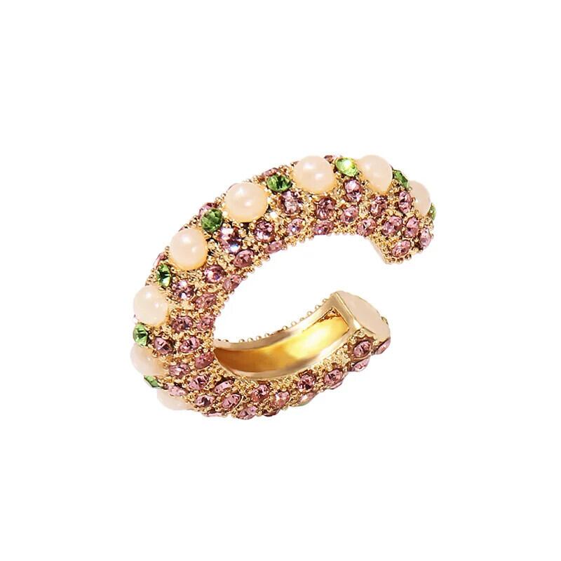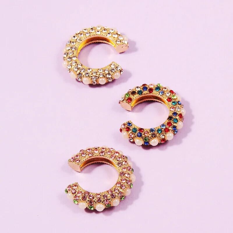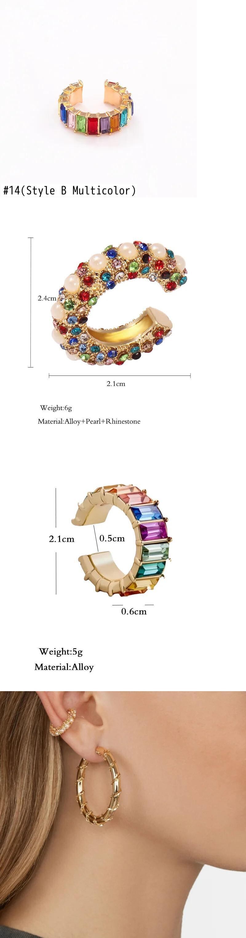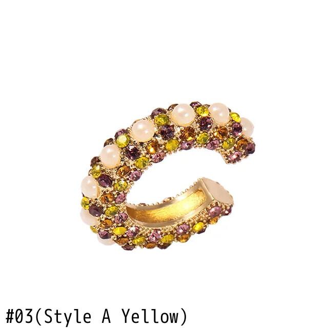 送料無料 1PC ヴィンテージマルチカラーラインストーン耳クリップ女性ラインストーン CZ Peral 耳カフなしピアス C 型クリスタルイヤリングジュエリー 指輪 ビンテージ AE778878812974311505