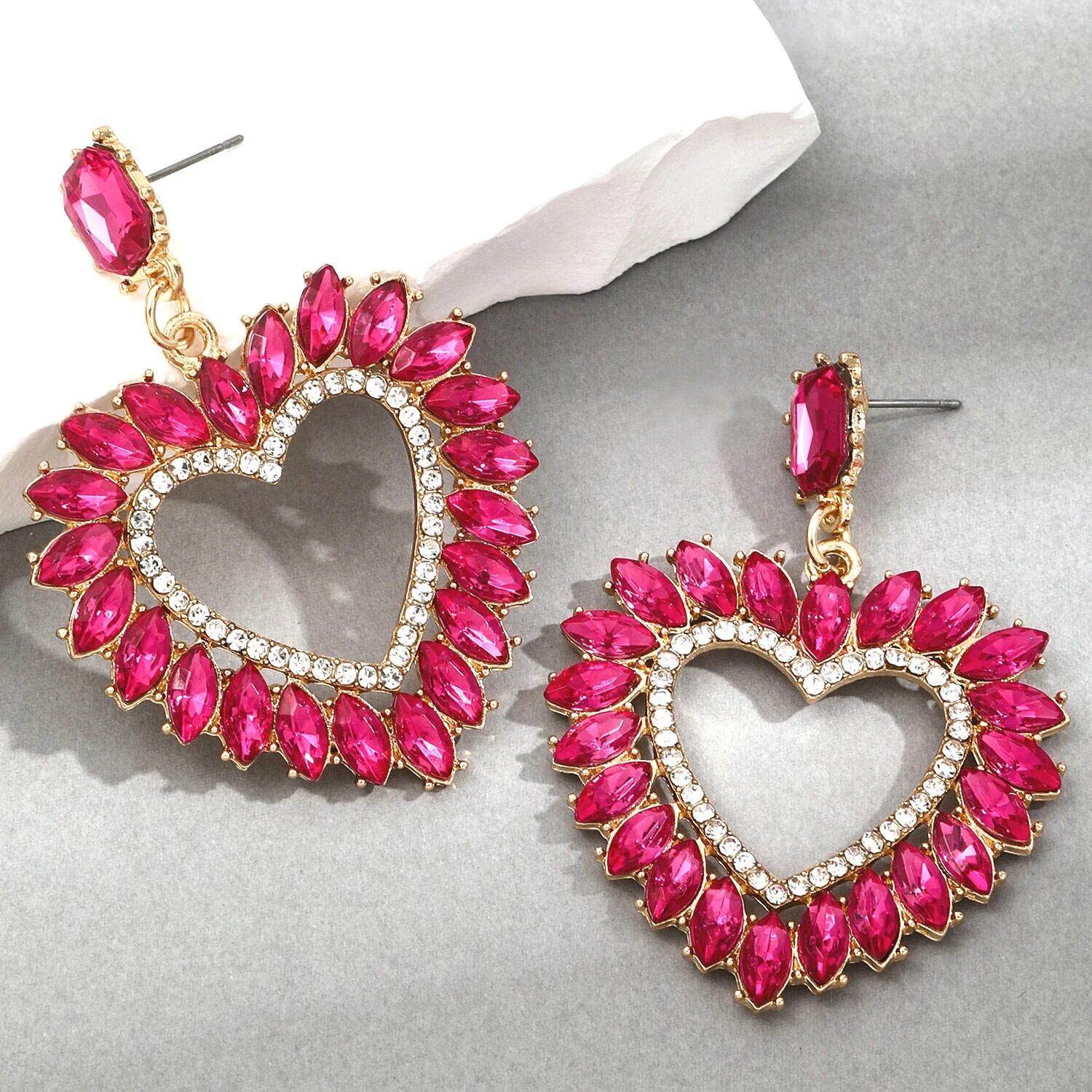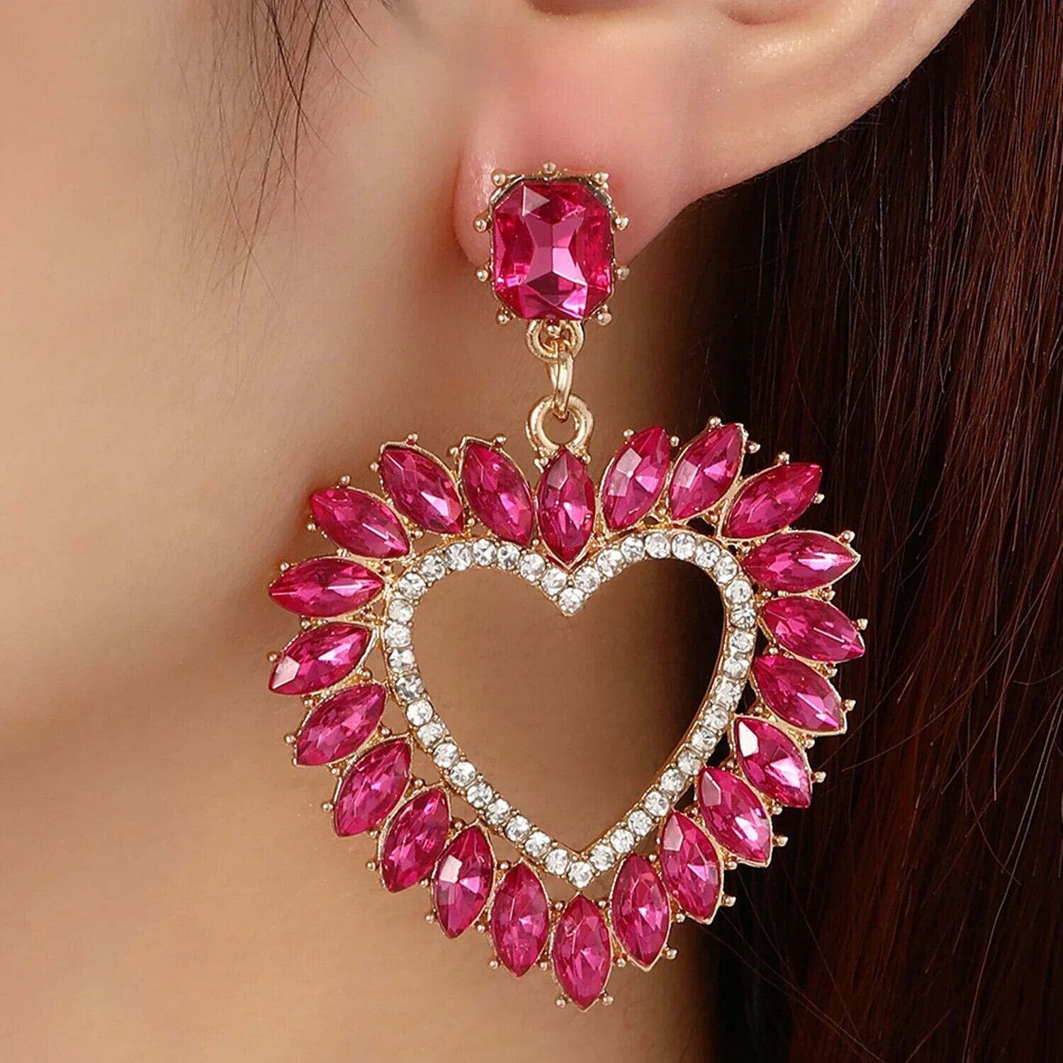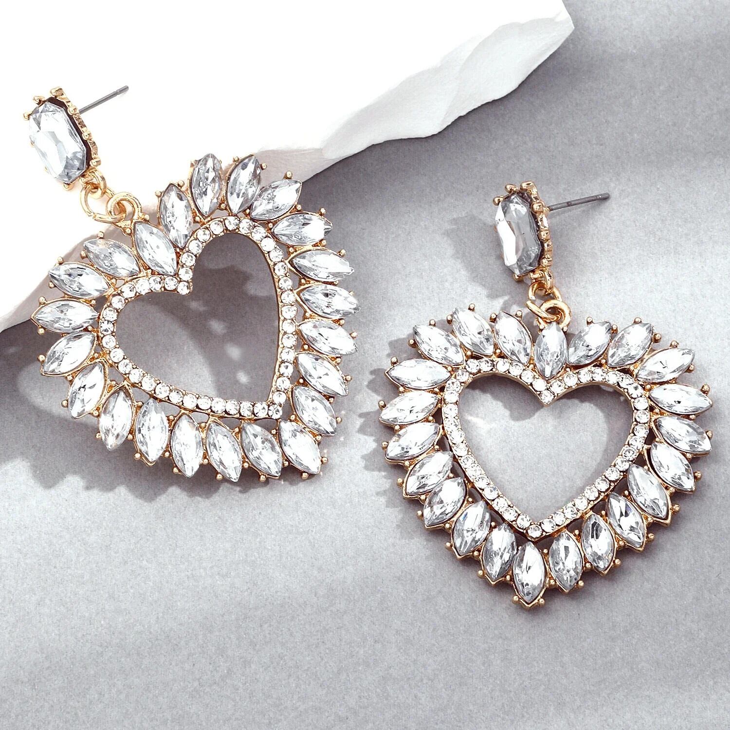 送料無料 ビッグハートブラブライヤリング女性ビジュー光沢のあるフルラインストーンクリスタルイヤリング花嫁のウェディングジュエリー 指輪 AE778878857952388784