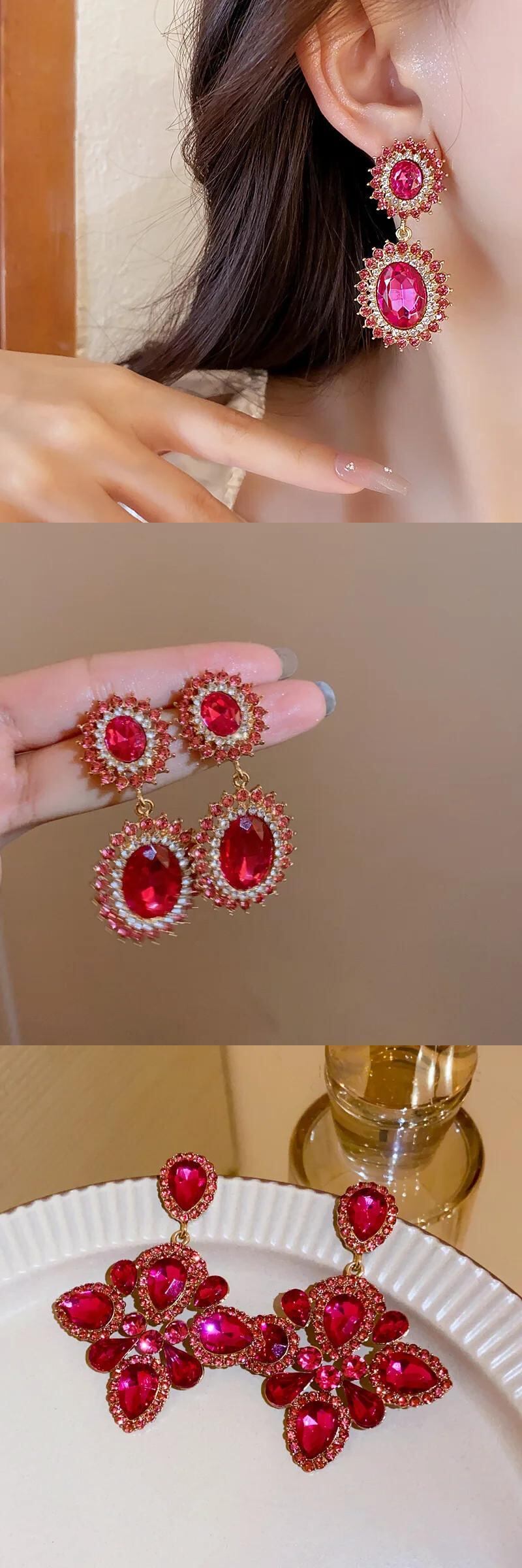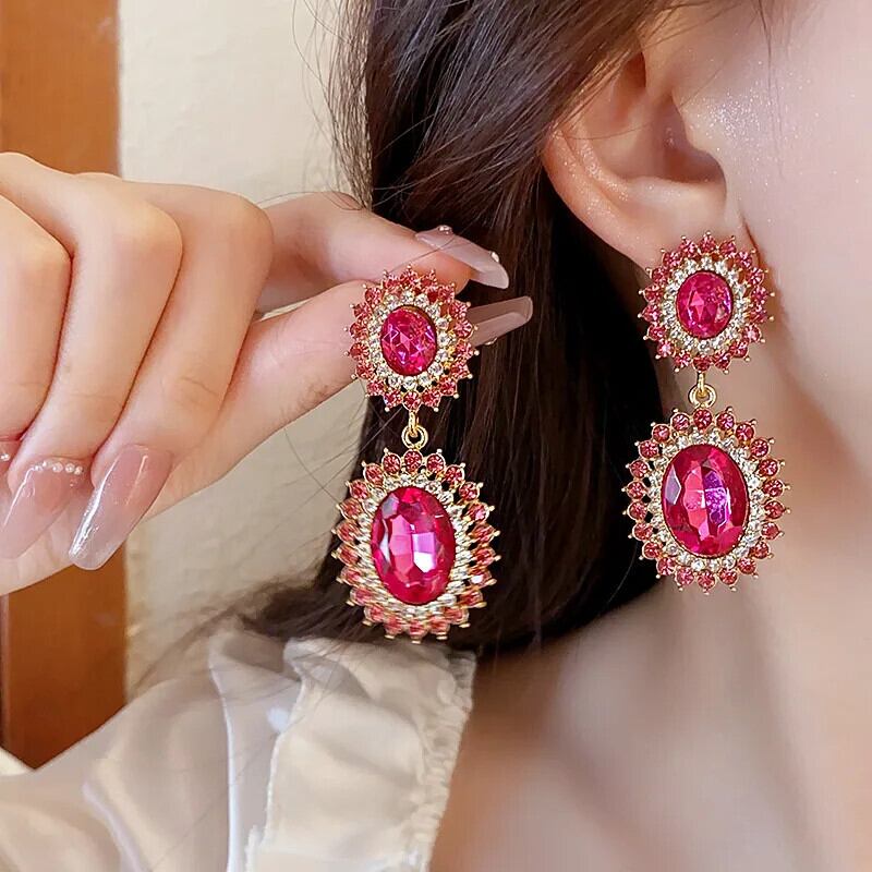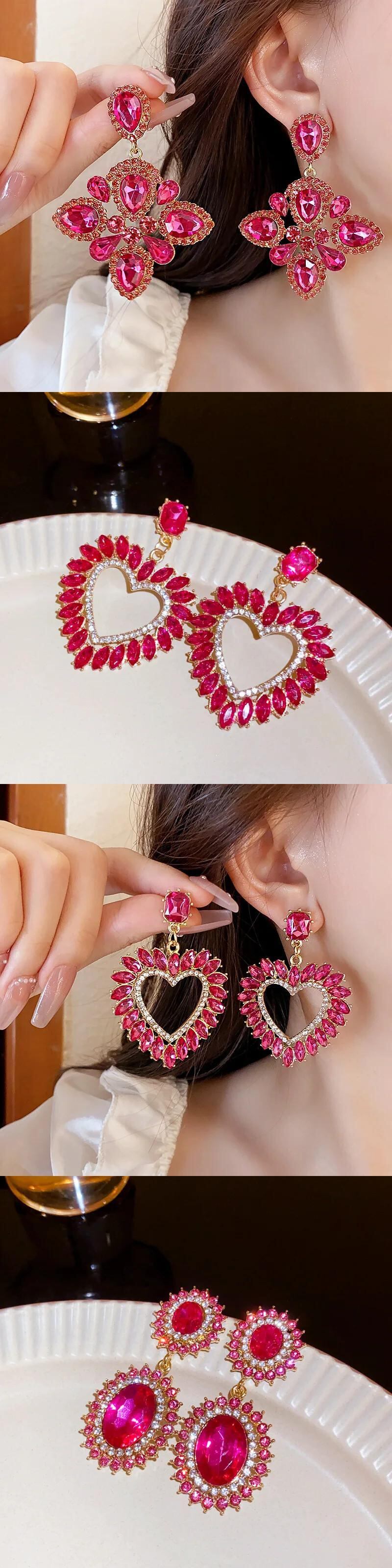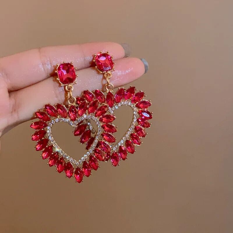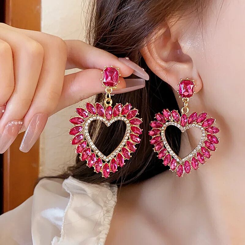 送料無料 高級誇張されたクリスタルイヤリング大きなハートの花光沢のあるラインストーンのスタッドのイヤリング女性パーティージュエリー Серьги 指輪 フラワーデザイン AE778878870604779393