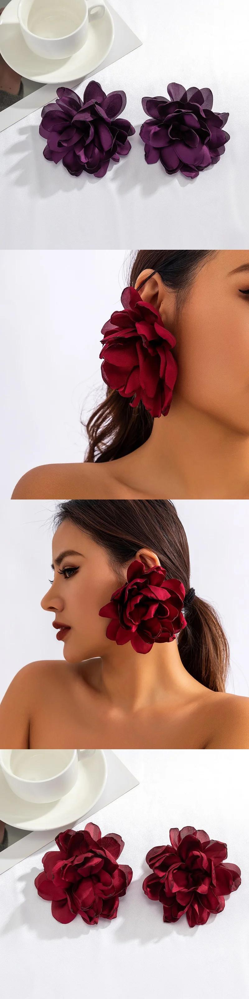 送料無料 誇張された大ふわふわ生地フラワーイヤリング女性布花イヤリング 2023 耳チャームジュエリー結婚式 指輪 フラワーデザイン AE778878877676290663