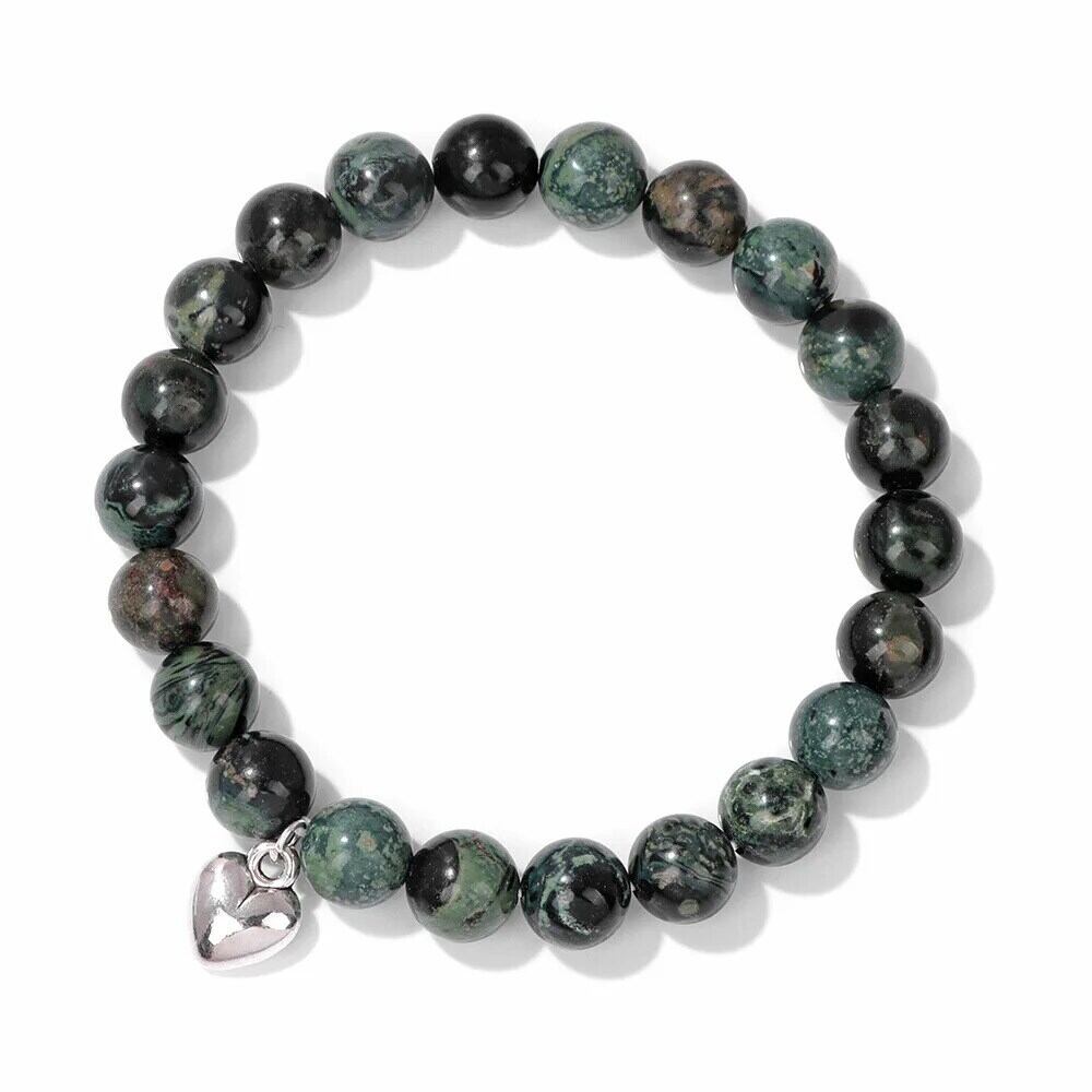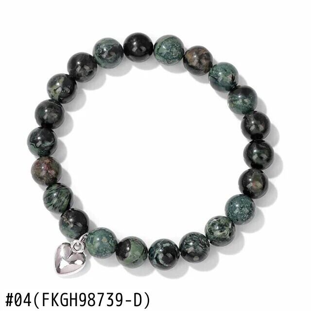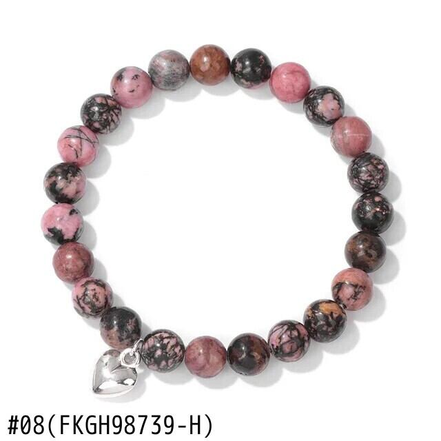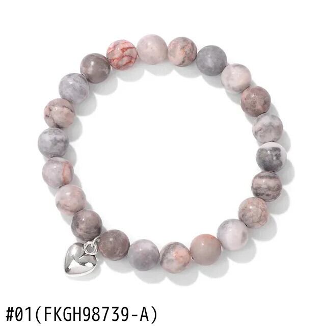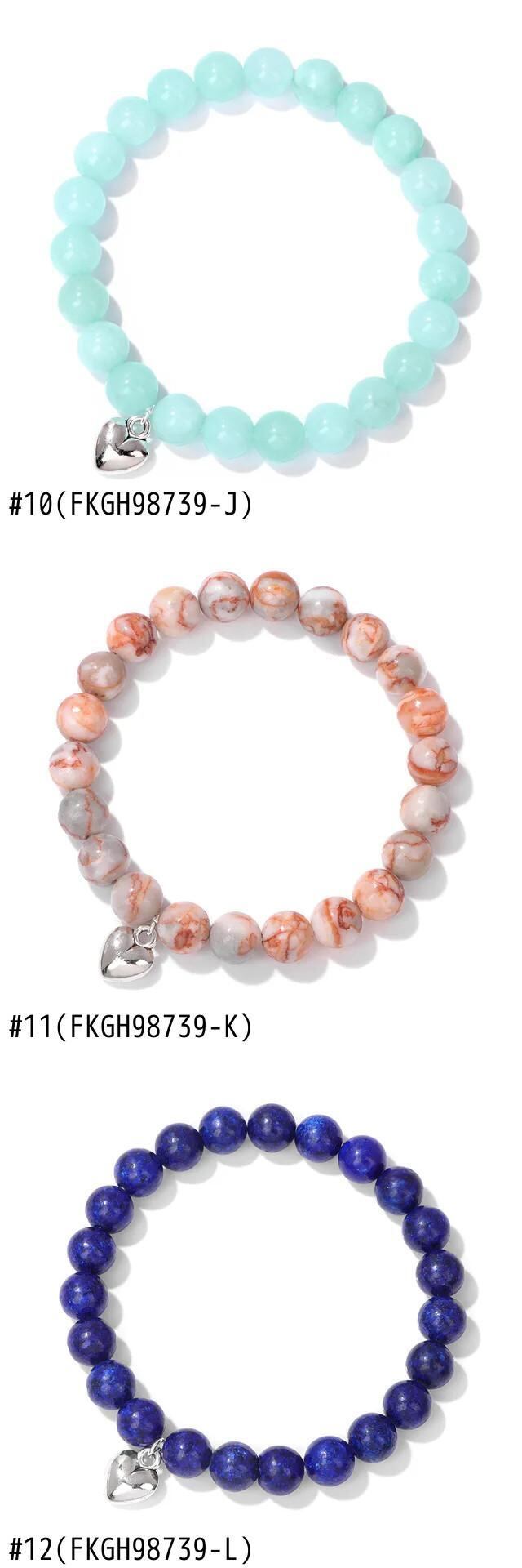 送料無料 8 ミリメートル天然石ビーズハートチャームブレスレット女性男性タイガーアイハウライトビーズ弾性ブレスレットバングルカップルジュエリーギフト エラスティック 伸縮 ナチュラル AE778878874878534420