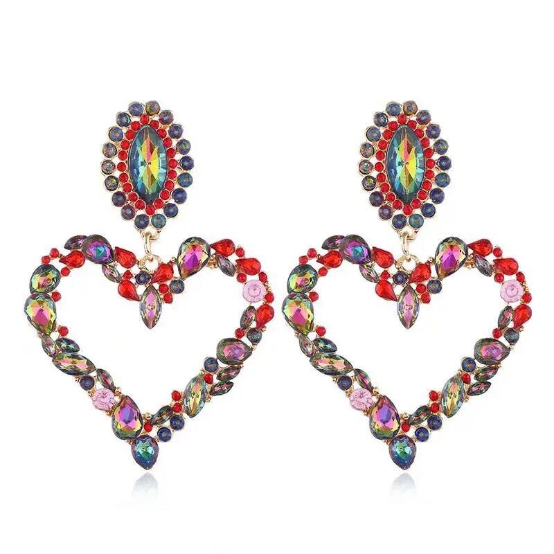 送料無料 ボヘミア誇張愛イヤリングライト高級イヤリング女性ビッグハートペンダントクリスタルブラブライヤリングジュエリー 指輪 AE778878885881400860