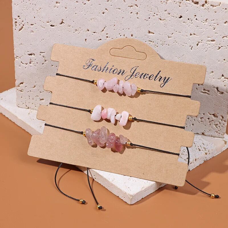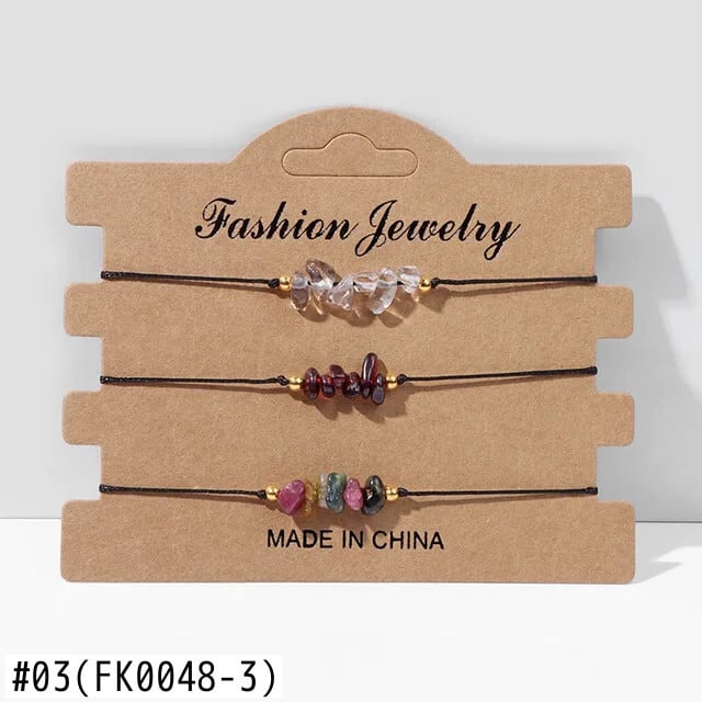 送料無料 3 ピース/セットナチュラルチップクォーツストーンブレスレットセット女性男性多層不規則な砂利クリスタルビーズ編組ブレスレットリストバンド 水晶 天然 AE778878820852566413
