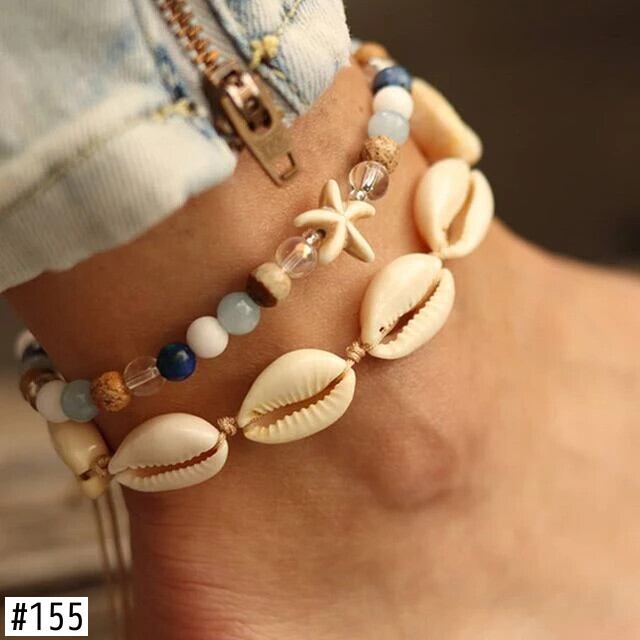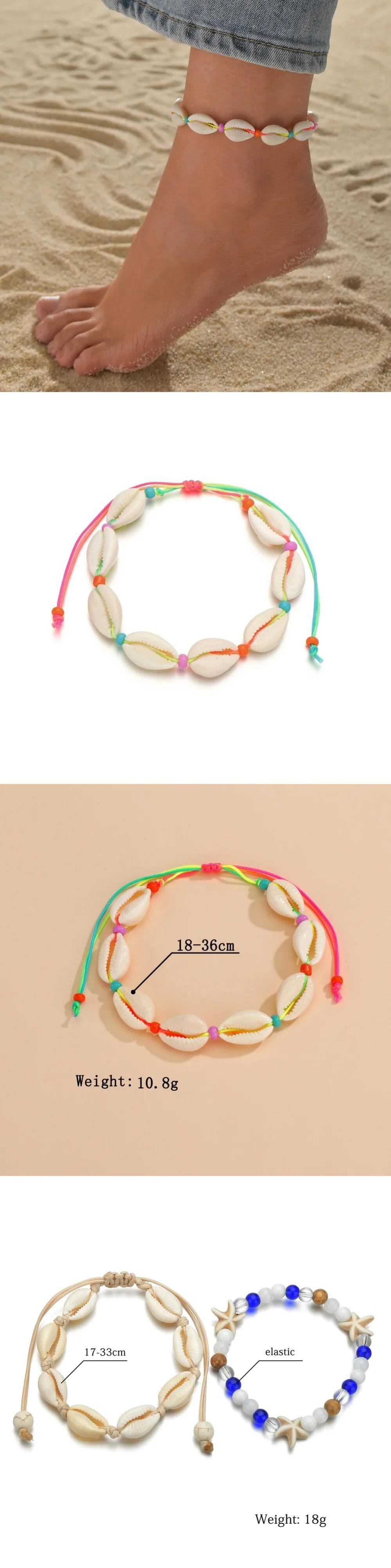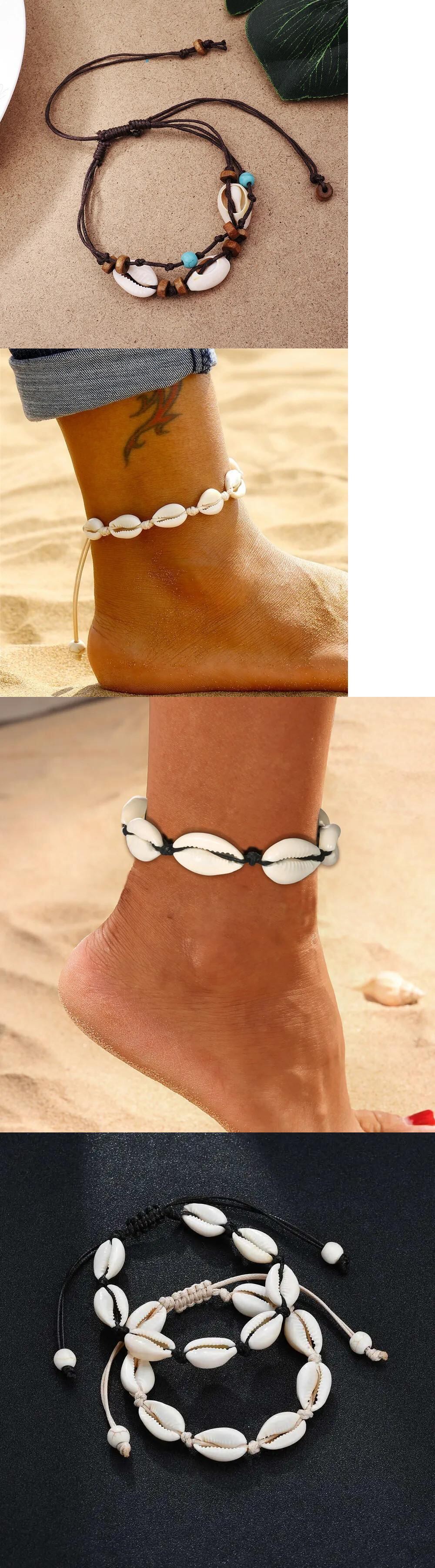 送料無料 自由奔放に生きるシェルロープアンクレット女性クリスタルビーズチャームアンクレットビーチ裸足ブレスレット足首脚チェーン足ビーチジュエリーギフト AE778878854266400690