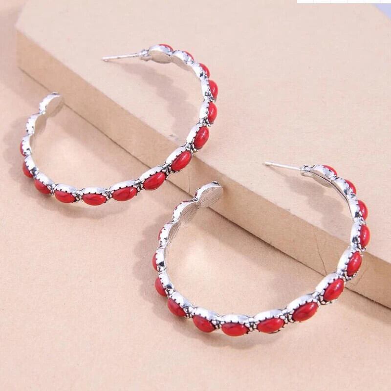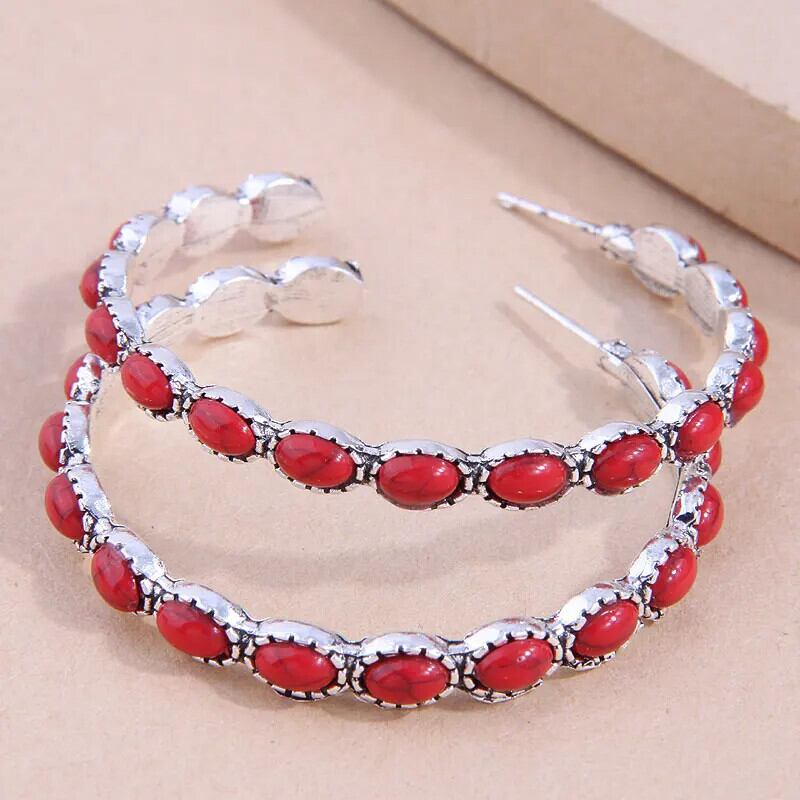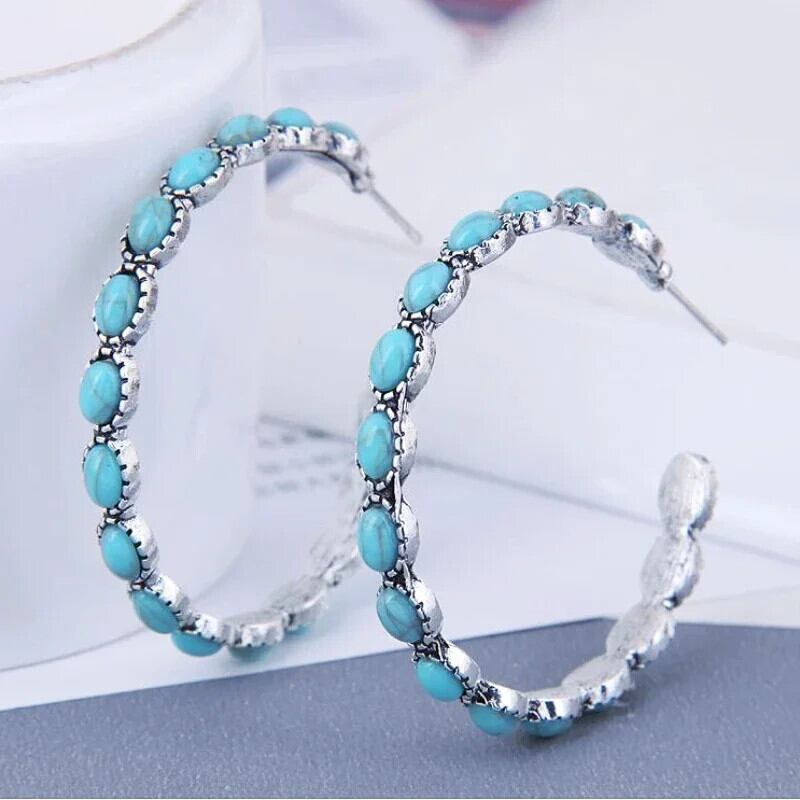 送料無料 ボヘミアビッグ中空ラウンドビーズイヤリングジュエリーターコイズストーン誇張サークルイヤリング女性ビーチ Jewerly ギフト 指輪 AE778878866835573988