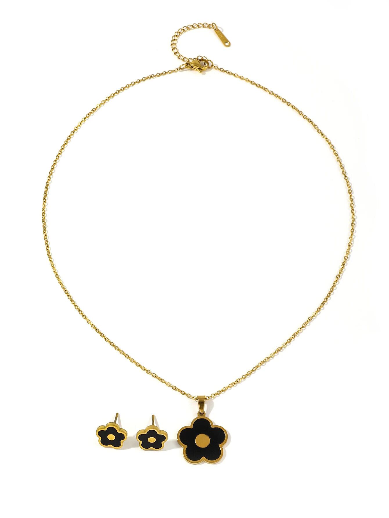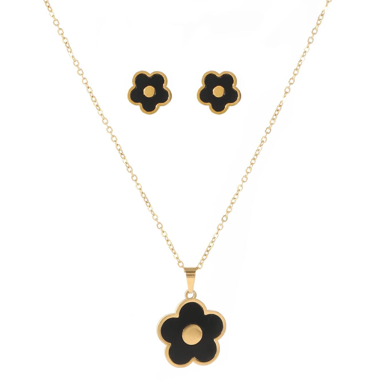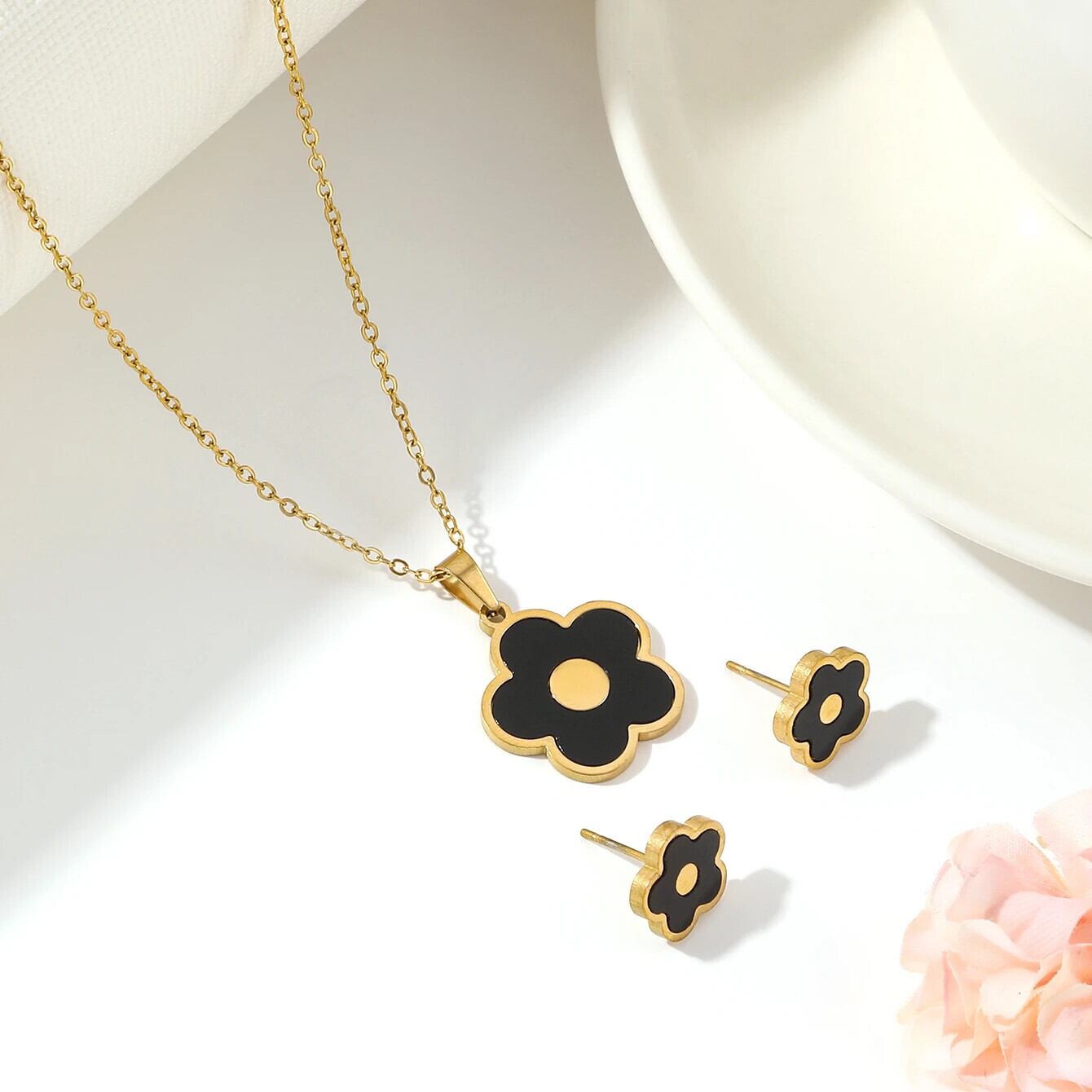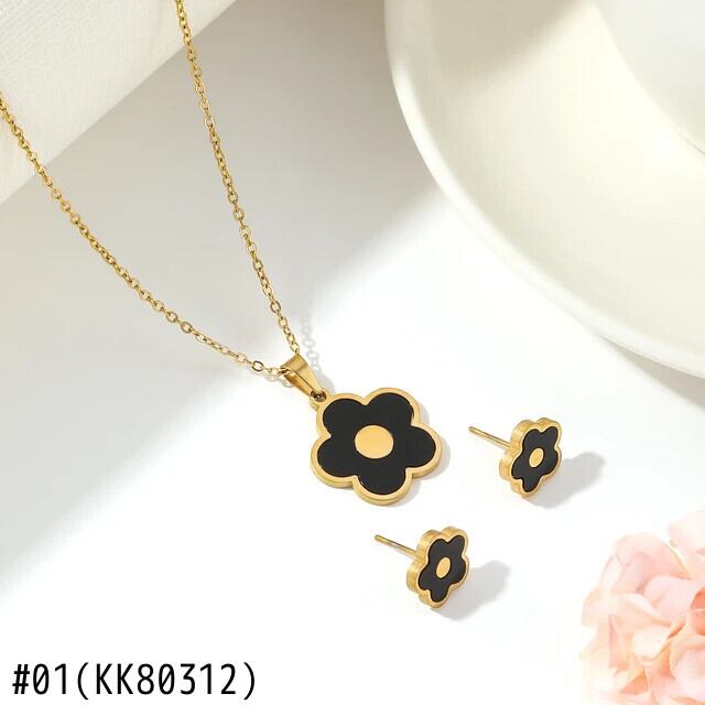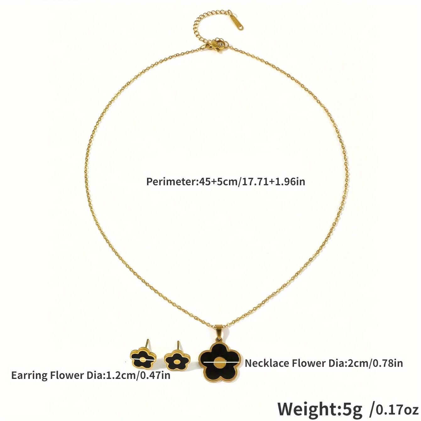 送料無料 1PC ネックレス & 1 ペアイヤリングステンレス鋼梅の花植物五葉の花のジュエリーセット女性のファミリーギフトアクセサリー レース フラワーデザイン AE778878878946917132