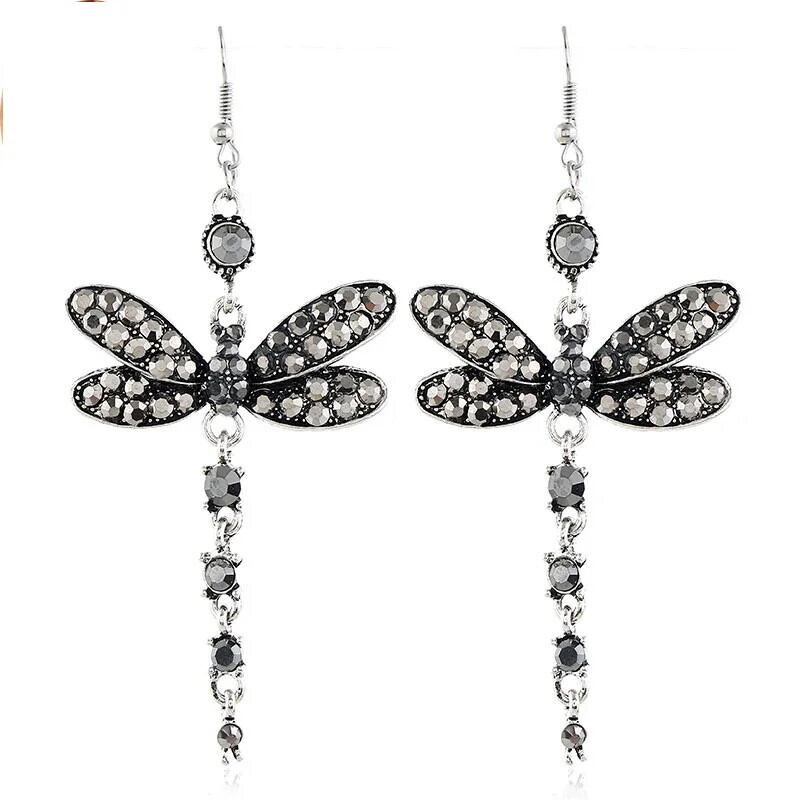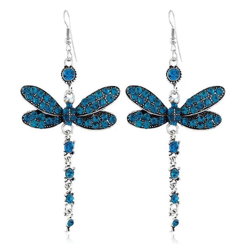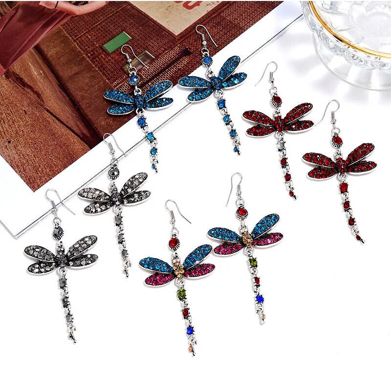 送料無料 レトロイヤリングクリエイティブ象嵌マルチカラージルコントンボ形イヤリング 指輪 AE778878827003814286