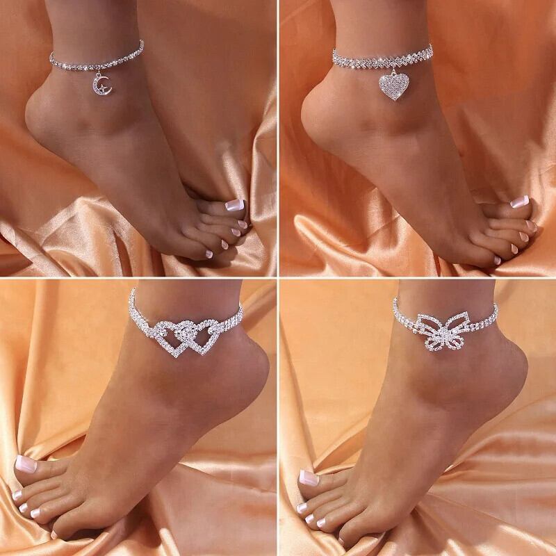 送料無料 高級ジルコンアンクレット女性クリスタルムーンスターハート蝶足首ブレスレットラインストーン脚チェーンビーチジュエリー AE778878880477136613