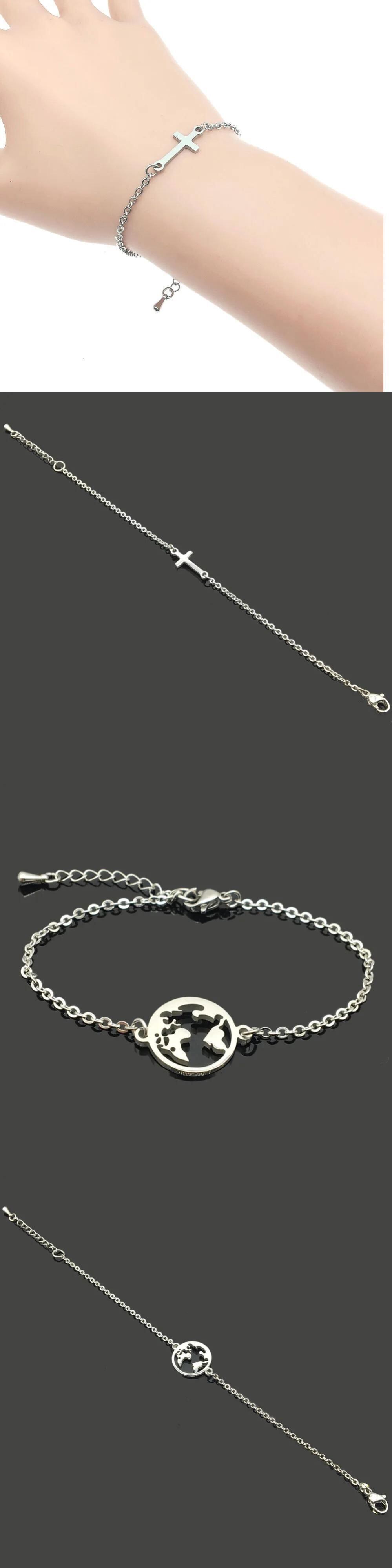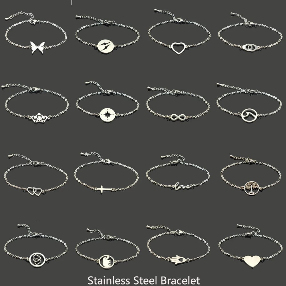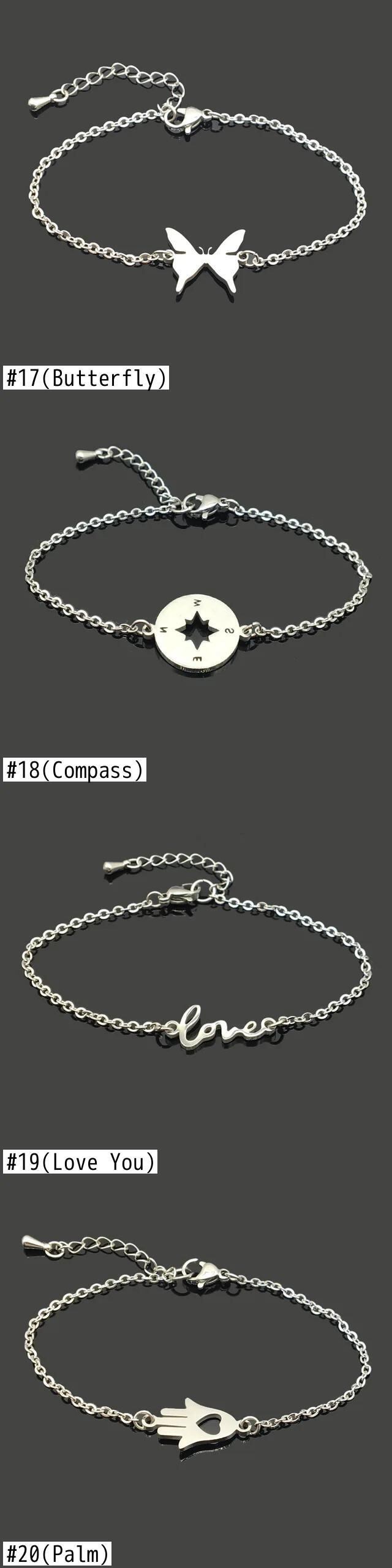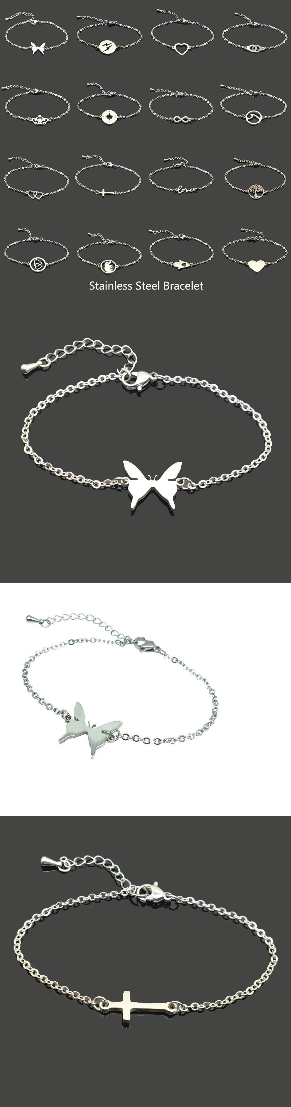 送料無料 ホットステンレス鋼チェーンブレスレット女性男性ハートクロス蝶象ペンダントバングルパーティージュエリーアクセサリーギフト AE778878843292354758