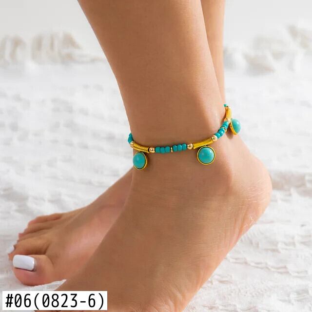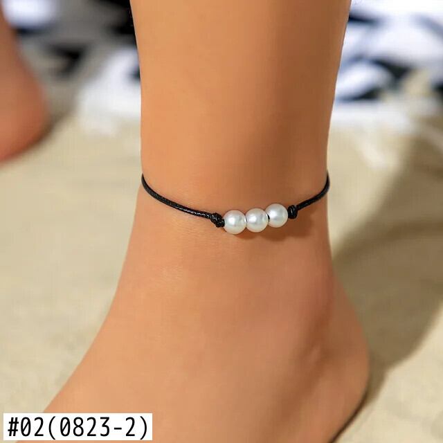 送料無料 自由奔放に生きる模造パールアンクレット女性ラウンドビーズアンクレットワックスラインロープチェーン足首ブレスレット脚ビーチサンダルアクセサリー 真珠 AE778878843213675876