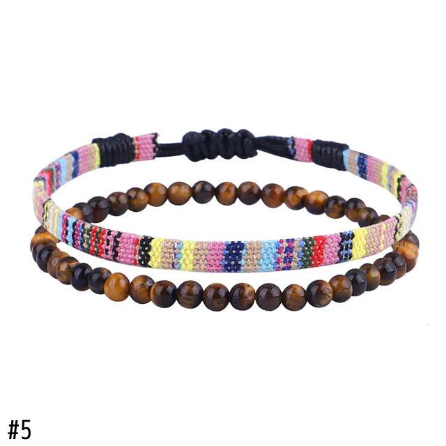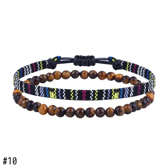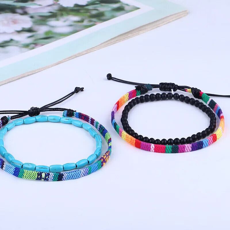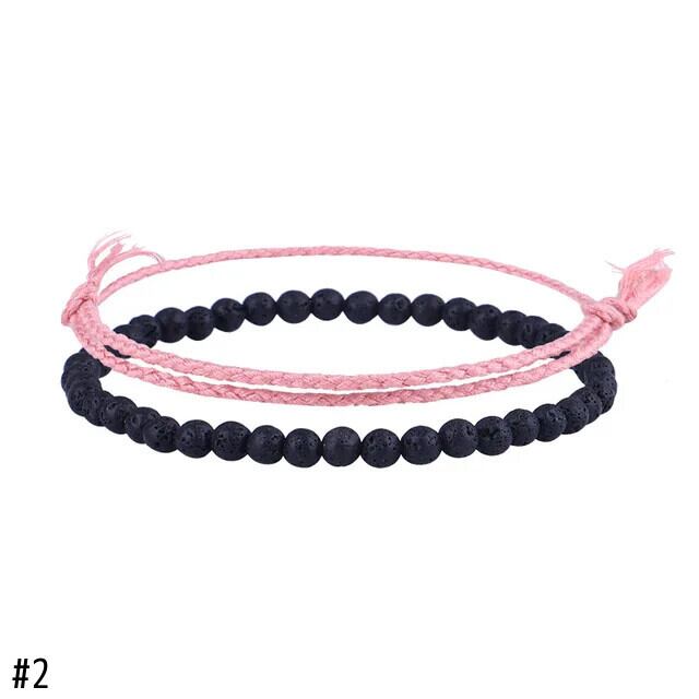 送料無料 2Pps/セット手作り編組虹色ロープチェーンアンクレットプライド溶岩タイガーアイストーンビーズアンクレットセットユニセックスカップルジュエリー AE778878852939585131
