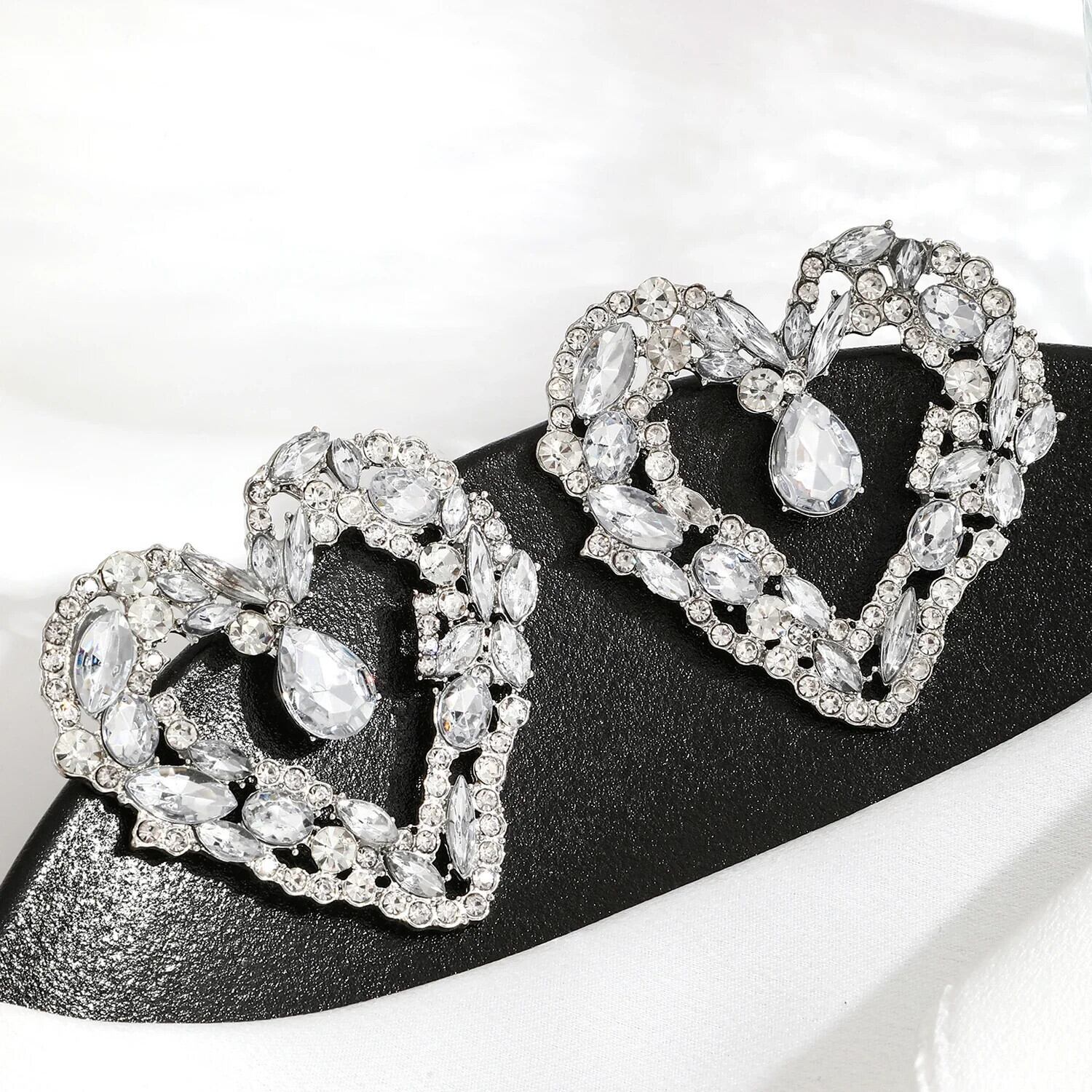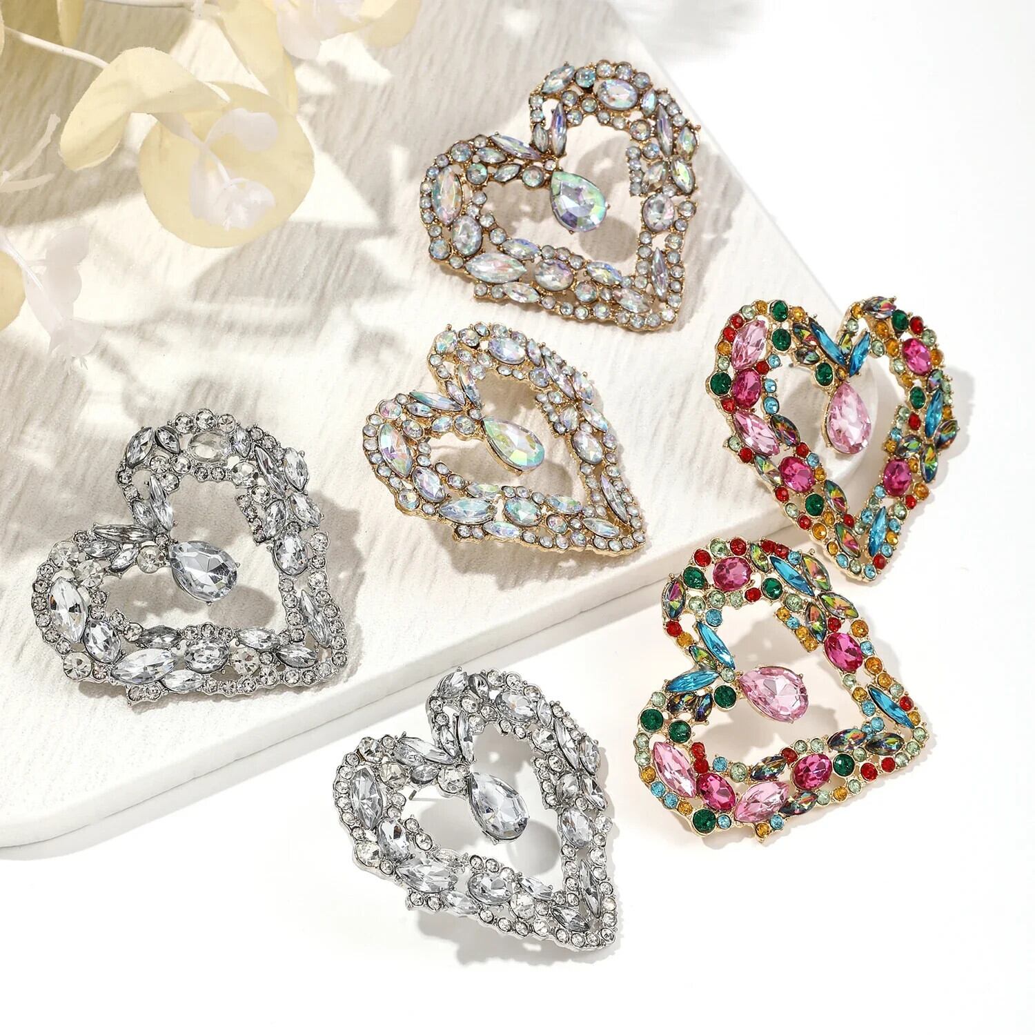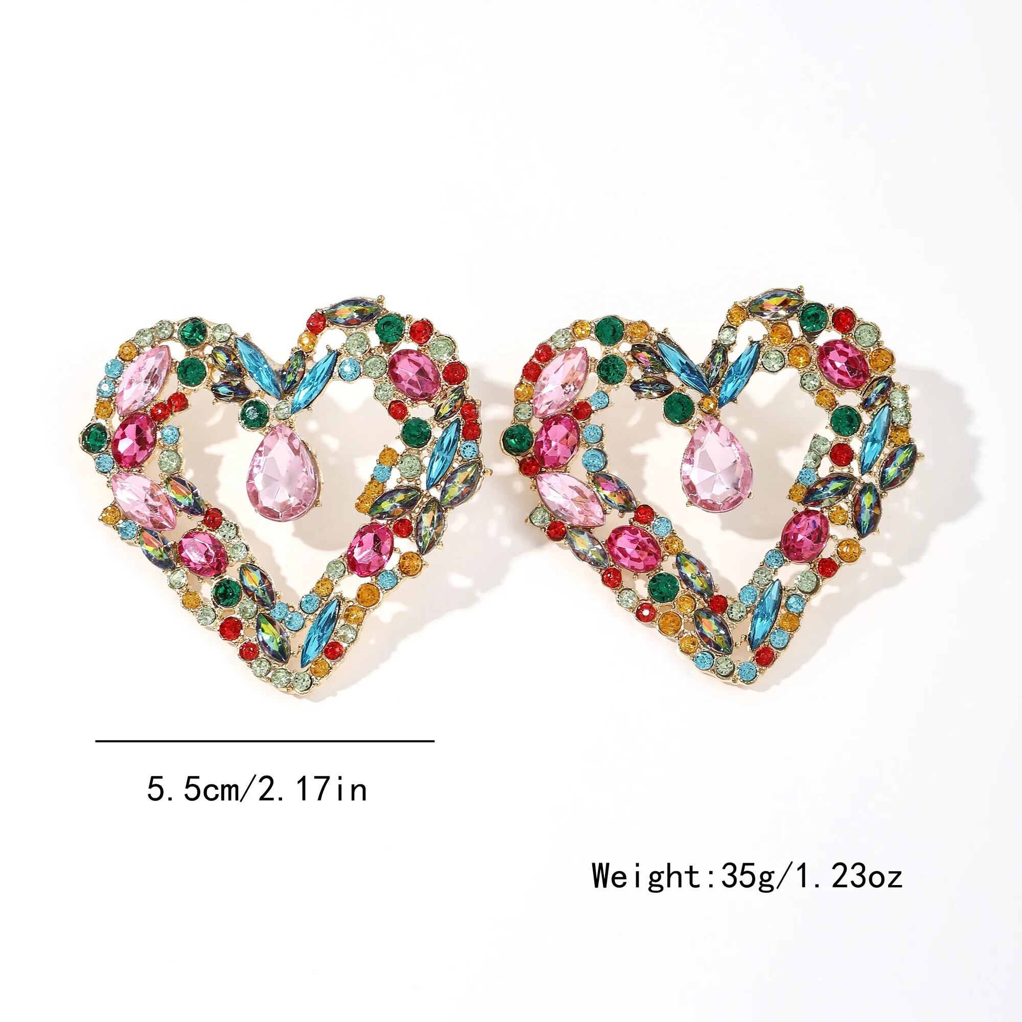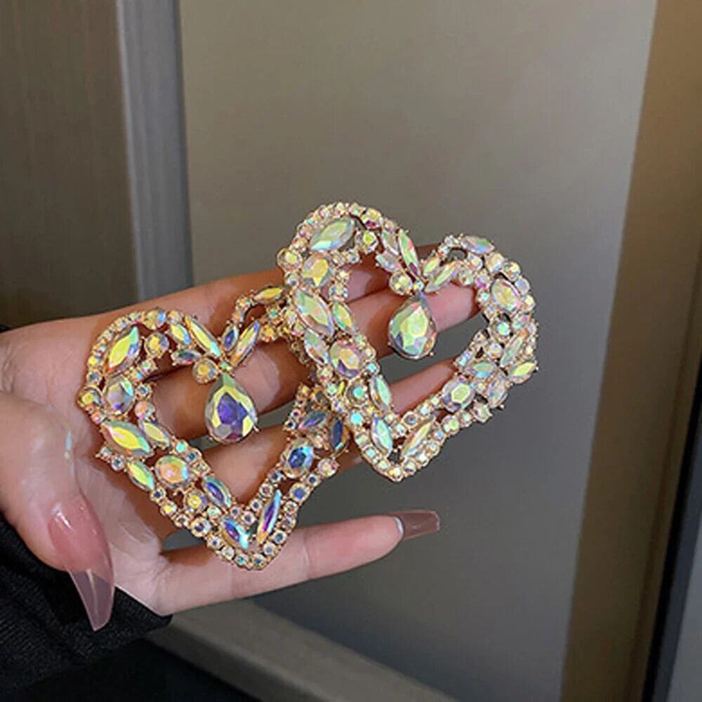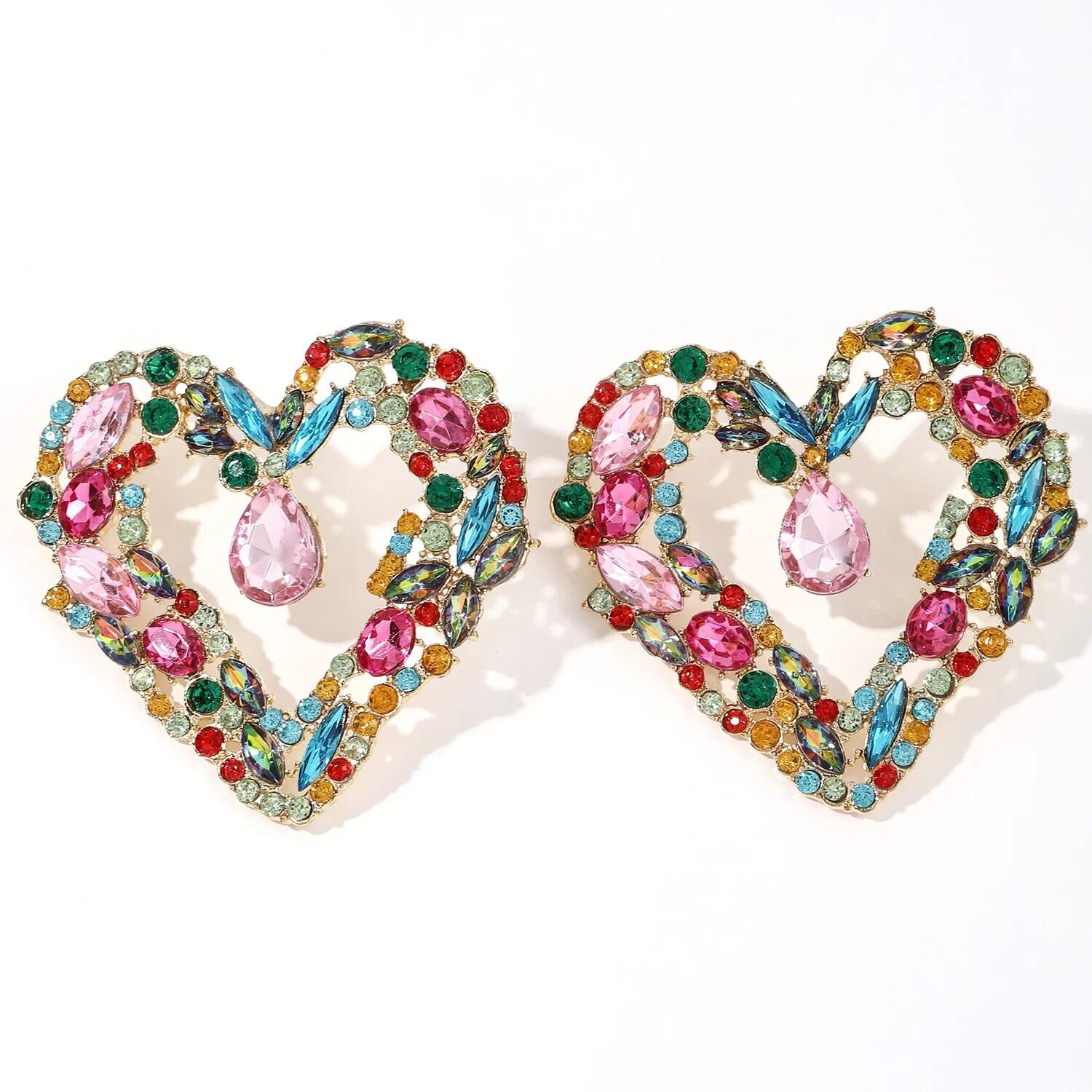 送料無料 ジュエリーカラフルなクリスタル誇張ビッグハートイヤリング女性の高級ブライダルウェディングパーティースタッドイヤリング Серьги ギフト 指輪 AE778878829983648774