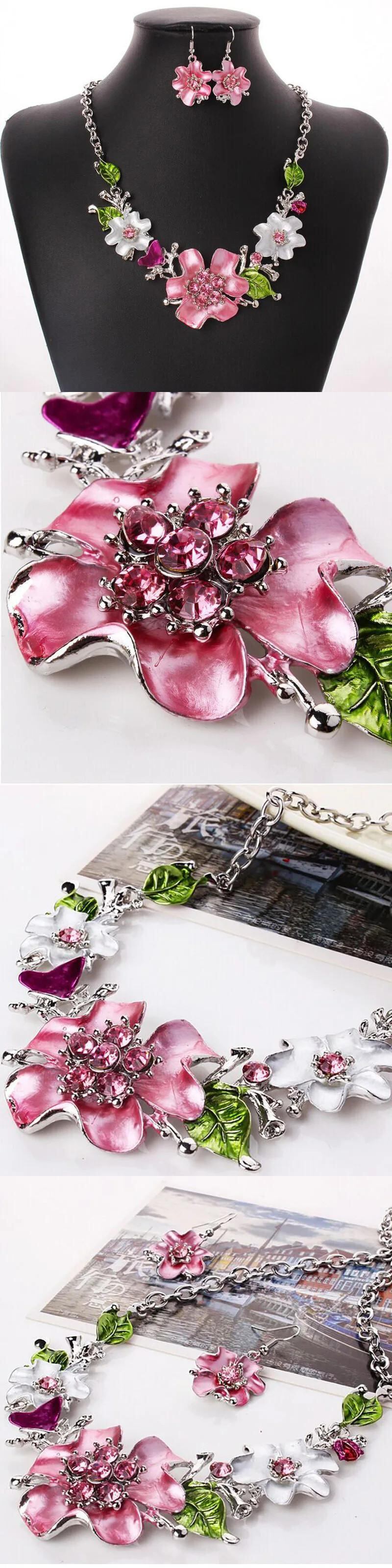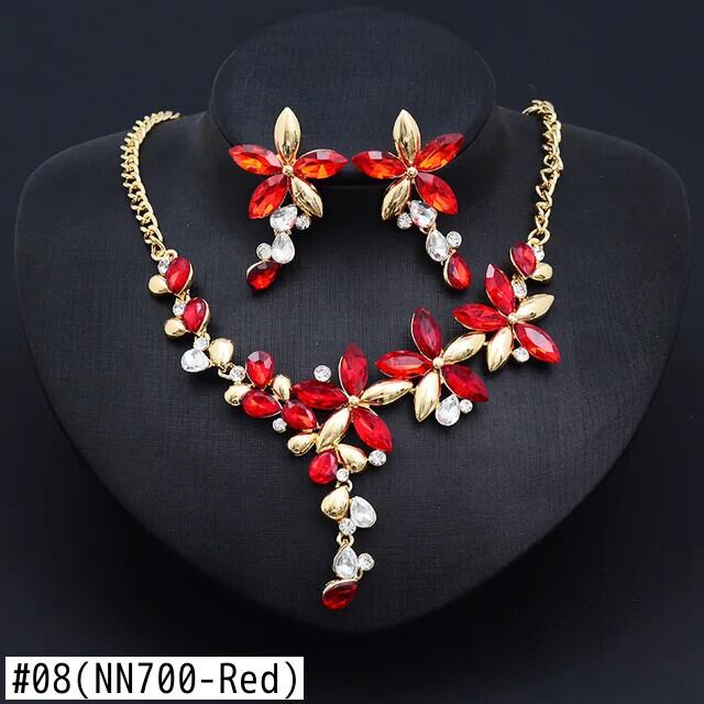 送料無料 2 ピース/セットラインストーンフラワーネックレスイヤリングセット高級ジュエリーセットアクセサリーバレンタインパーティービーチブライダルジュエリービジュー レース 指輪 フラワーデザイン AE778878868707433806