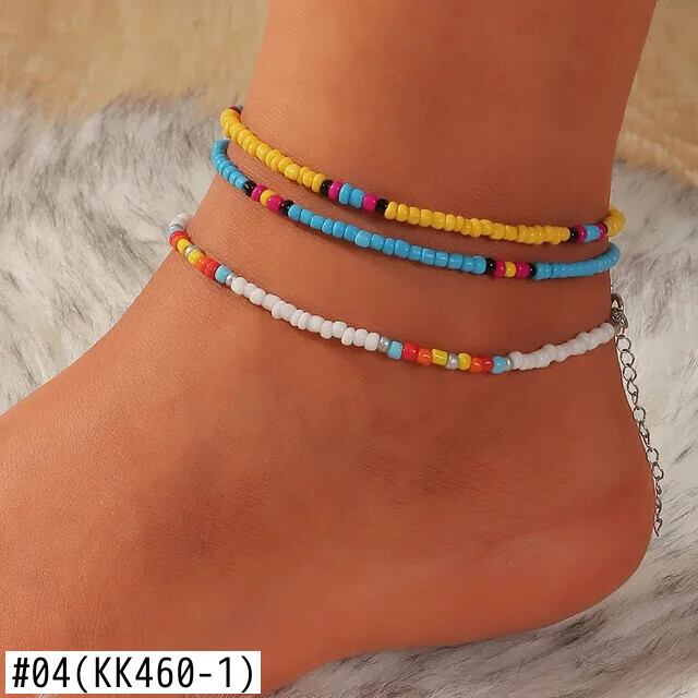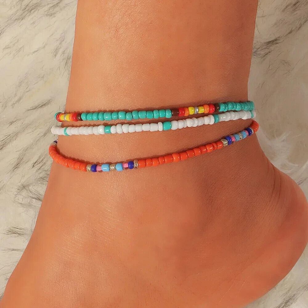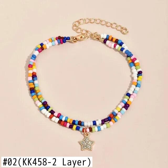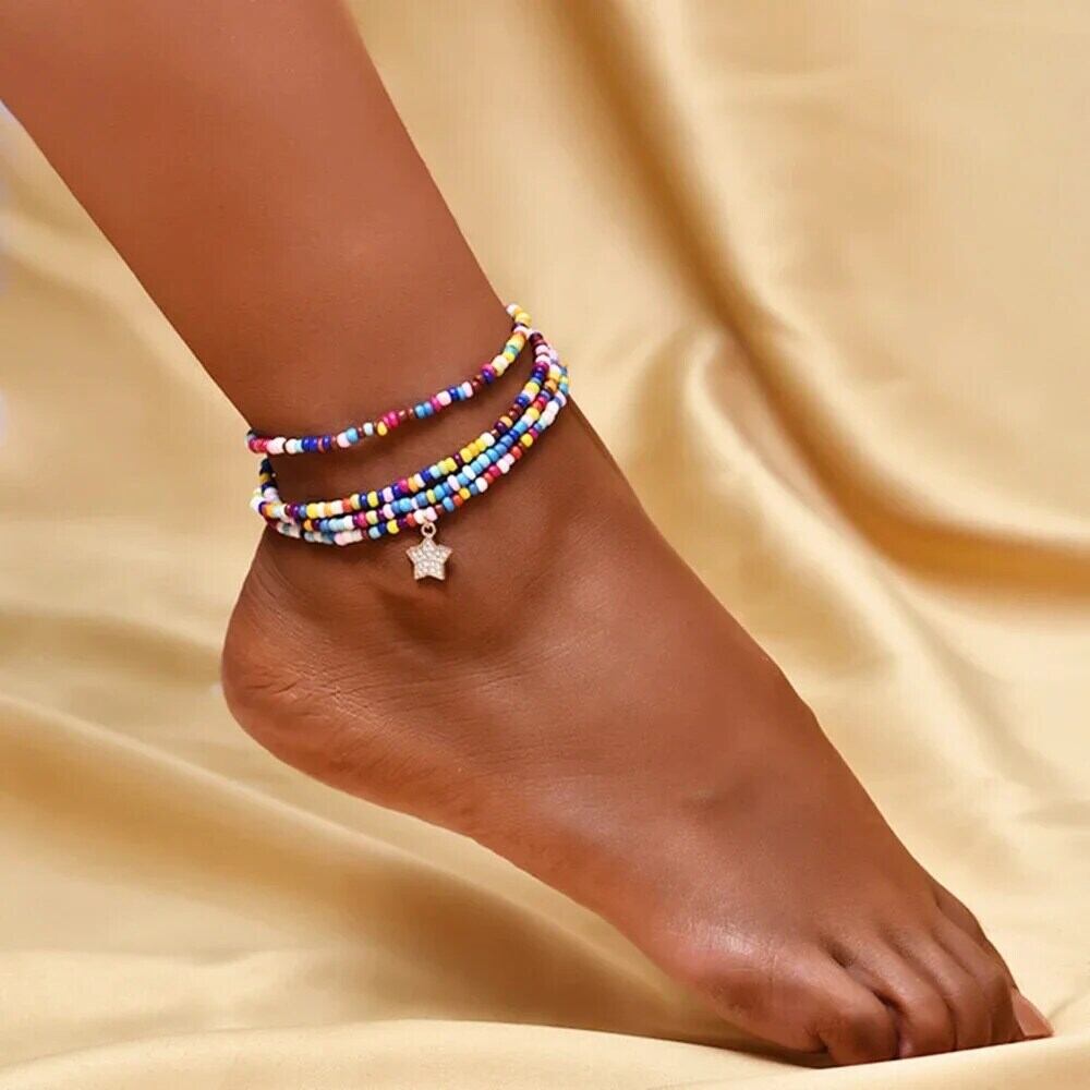 送料無料 ボヘミアライスビーズアンクレットブレスレットスターアンクレット裸足女性多層レッグチェーンビーチミニマリストジュエリー Ножные цепи マルチレイヤー AE778878846755446844