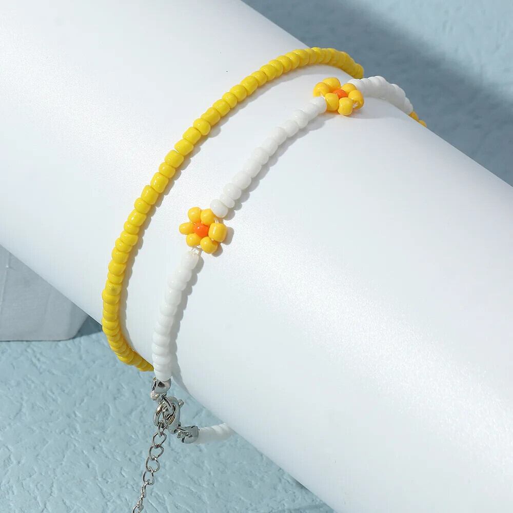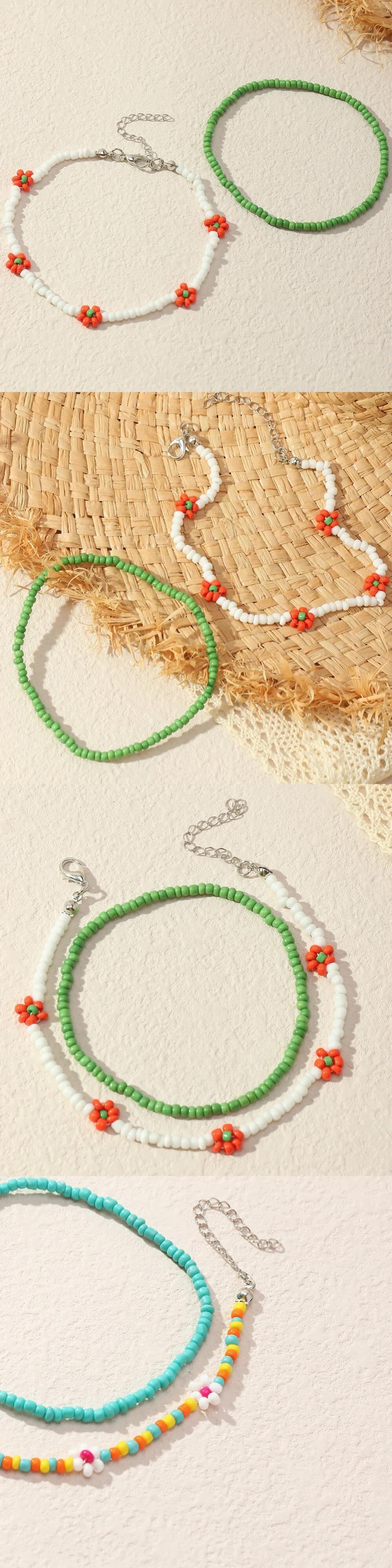 送料無料 2 ピース/セット自由奔放に生きる花ビーズアンクレットセット女性トレンディな夏のオーシャンビーチ手作りビーズ足首ブレスレット足脚ジュエリーギフト サマー 夏物 フラワーデザイン AE778878861302777432