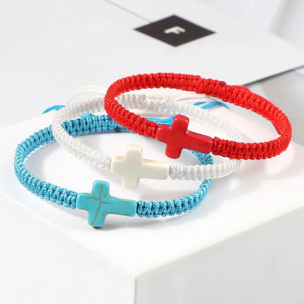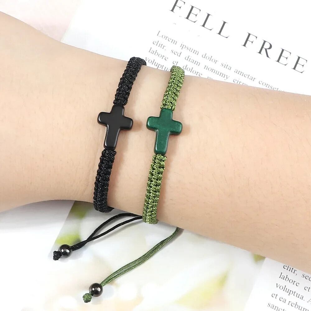 送料無料 幸運クロスチャームブレスレットユニセックス調節可能な編組ロープブレスレット女性男性お土産バングルカップルジュエリーギフト アジャスタブル AE778878859533747961