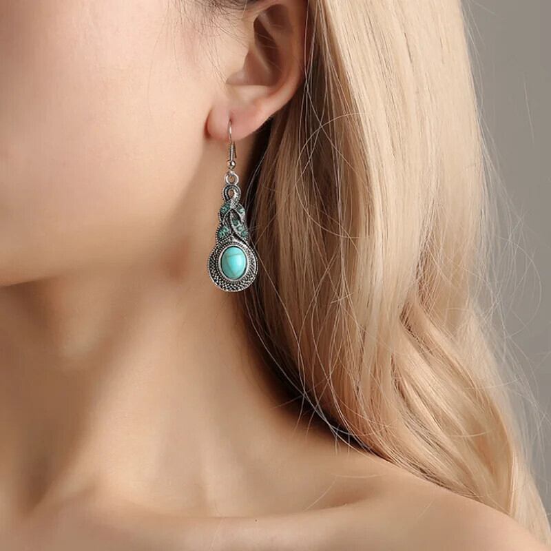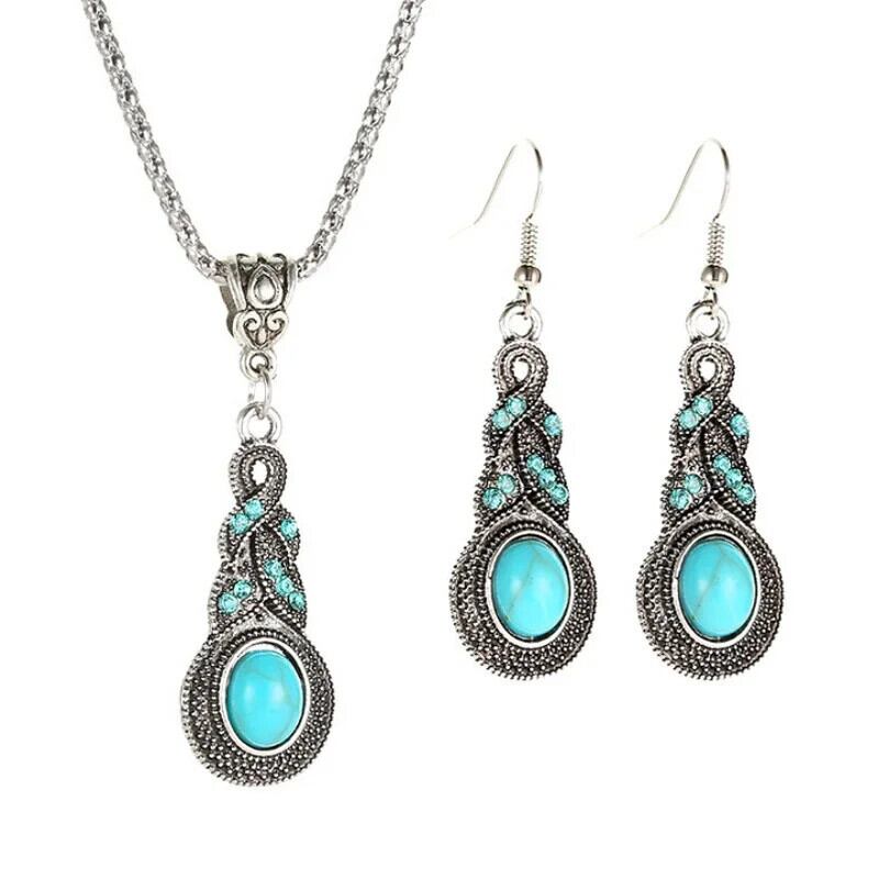 送料無料 ボヘミアンターコイズペンダントネックレスイヤリングジュエリーセットヴィンテージ CZ 天然石チャームネックレスイヤリング女性ジュエリー レース ナチュラル 指輪 ビンテージ AE77887886823499523