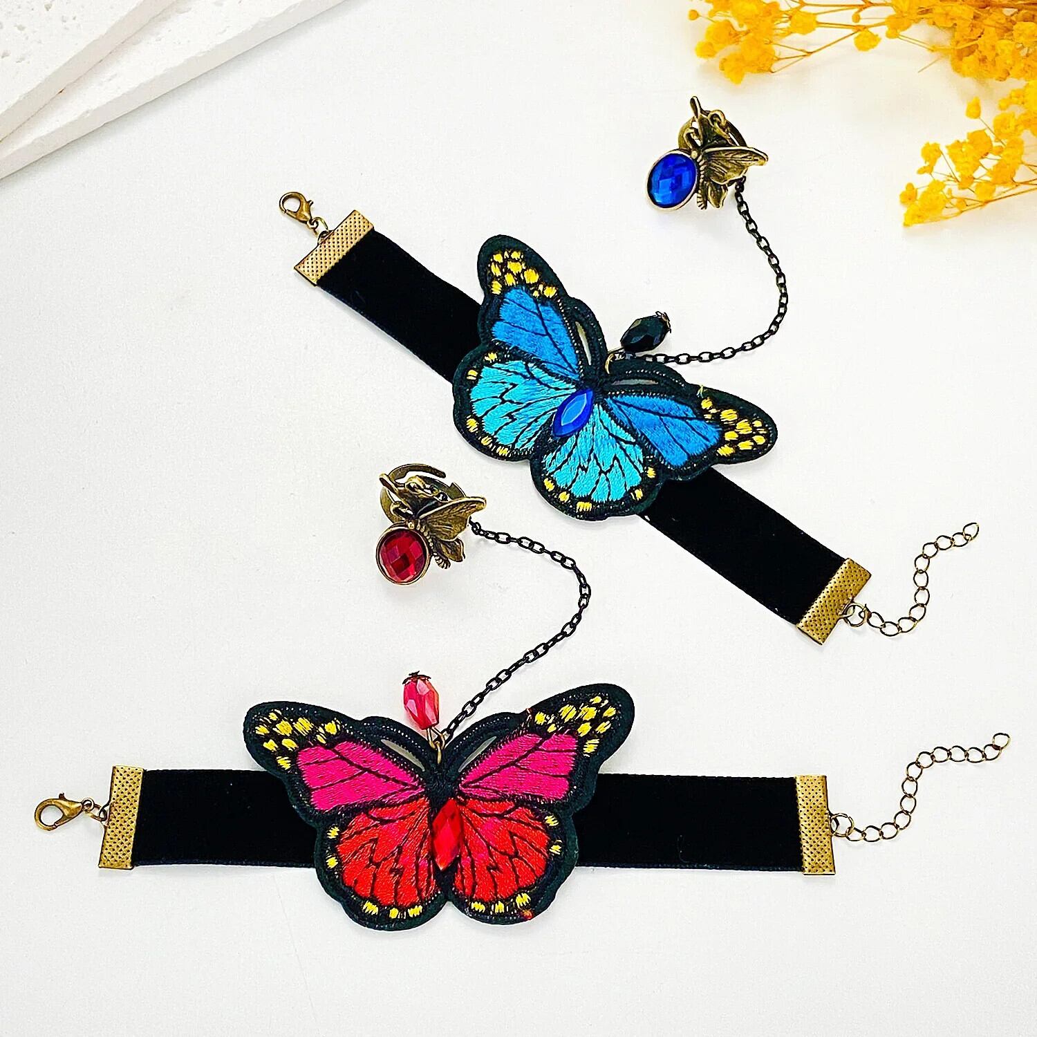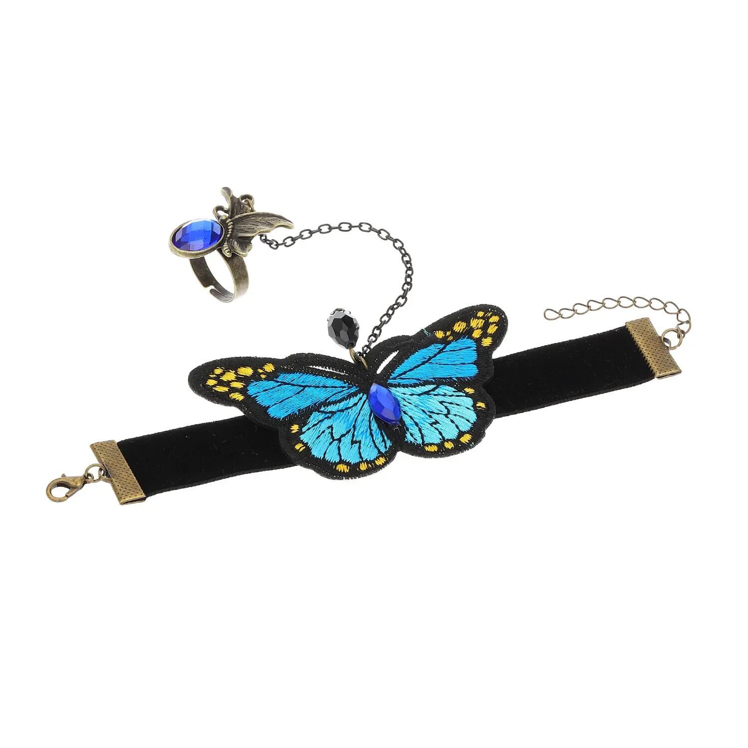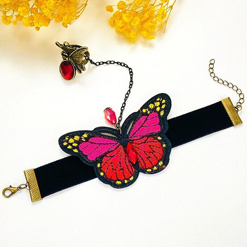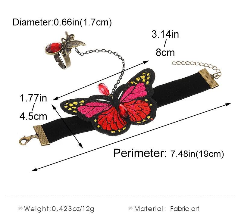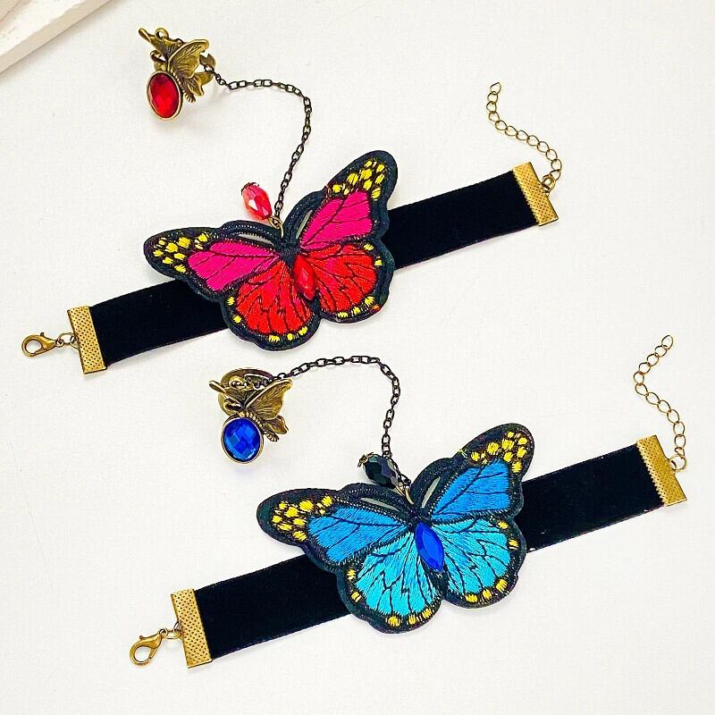 送料無料 クリエイティブカラフルな刺繍蝶ベルベットフィンガーブレスレット女性ヴィンテージ接続ハンドバックチェーンバングルハーネスジュエリー ベルト ビンテージ AE778878829293433791
