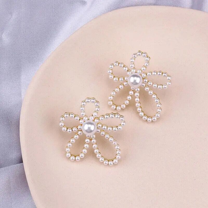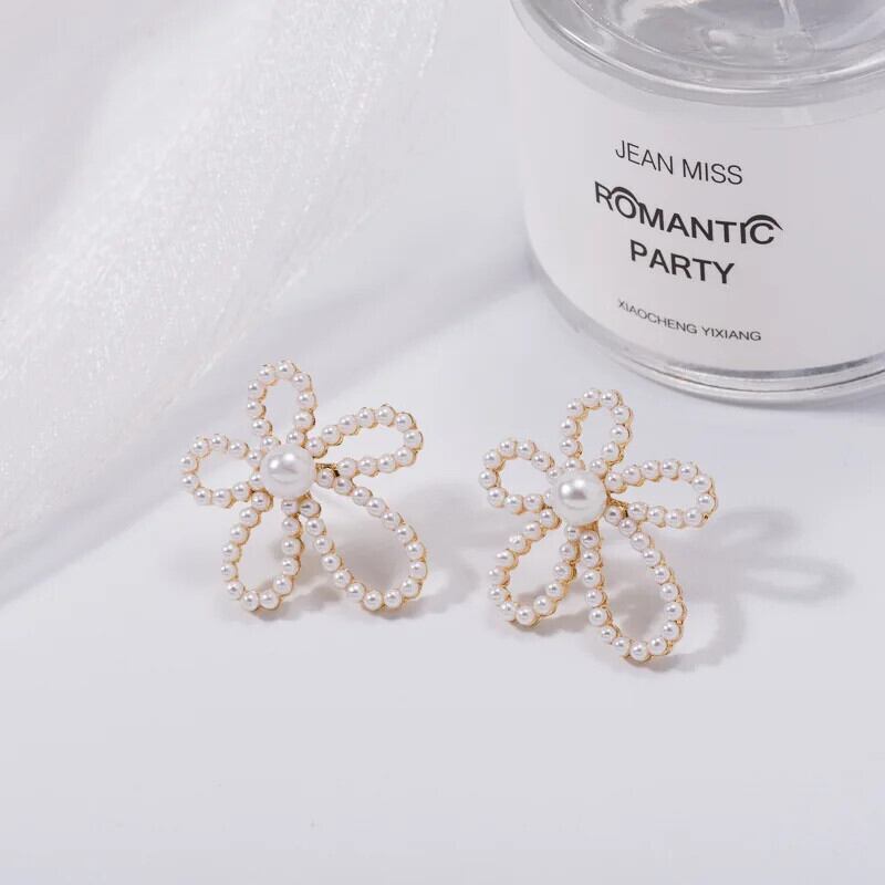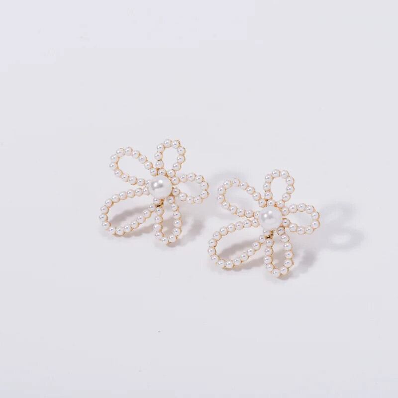 送料無料 模造パールかわいい花のスタッドピアス女性ガールズジオメトリイヤリングブークレドールドリユパーティージュエリーギフト 大人ガーリー スウィート キュート カジュアル 真珠 指輪 フラワーデザイン AE778878873045684308