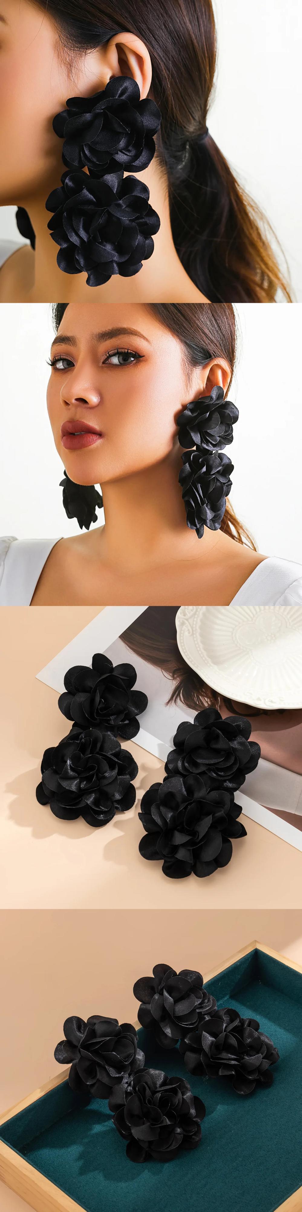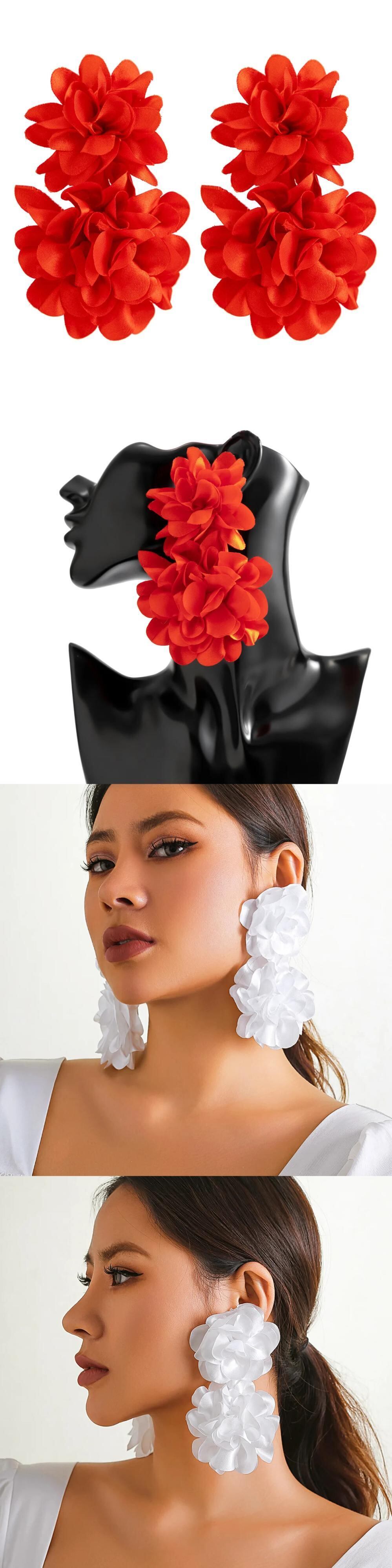 送料無料 ボヘミアビッグ布フラワーイヤリング女性ステートメントジュエリー手作り電話イヤリングパーティー誕生日アクセサリービジューギフト 指輪 フラワーデザイン AE778878826588387719