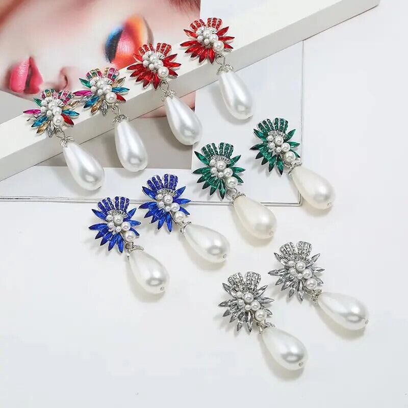 送料無料 ボヘミアン誇張クリスタル幾何学的な花のスタッドピアスウェディングアクセサリー女性ブリンブリンラインストーンブラブライヤリングギフト 指輪 フラワーデザイン AE778878832000314530