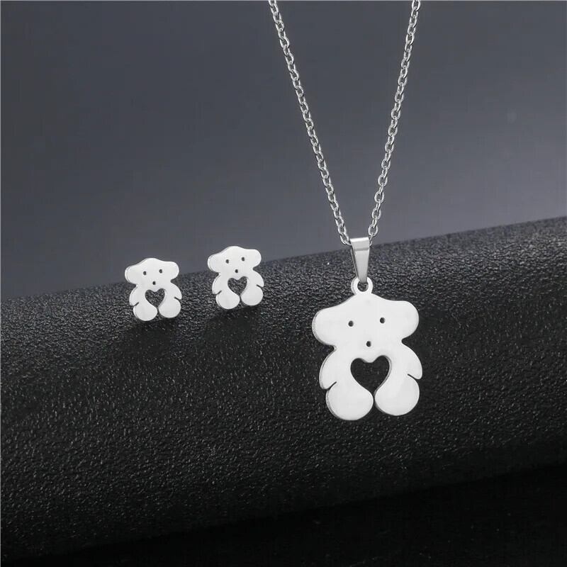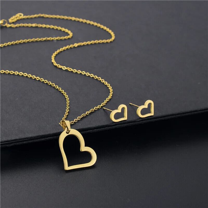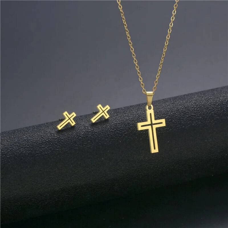 送料無料 ステンレス鋼ハートクロスペンダントチャームネックレス & イヤリング中空キアンチョーカージュエリーセット女性アクセサリーギフト レース 指輪 AE778878842430822595