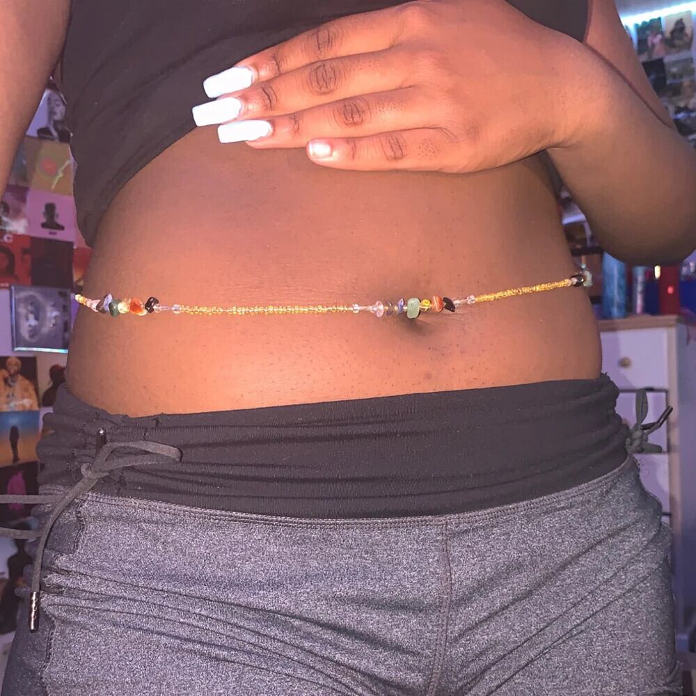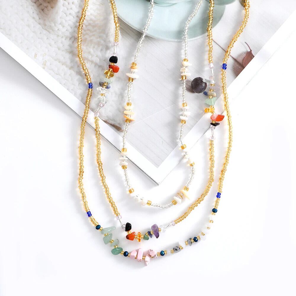 送料無料 ボヘミアビキニビーチウエストチェーンセクシーな天然石 Gl ライスビーズボディチェーンジュエリーベリーチェーンチャームウエストバンド ナチュラル AE778878859705190710