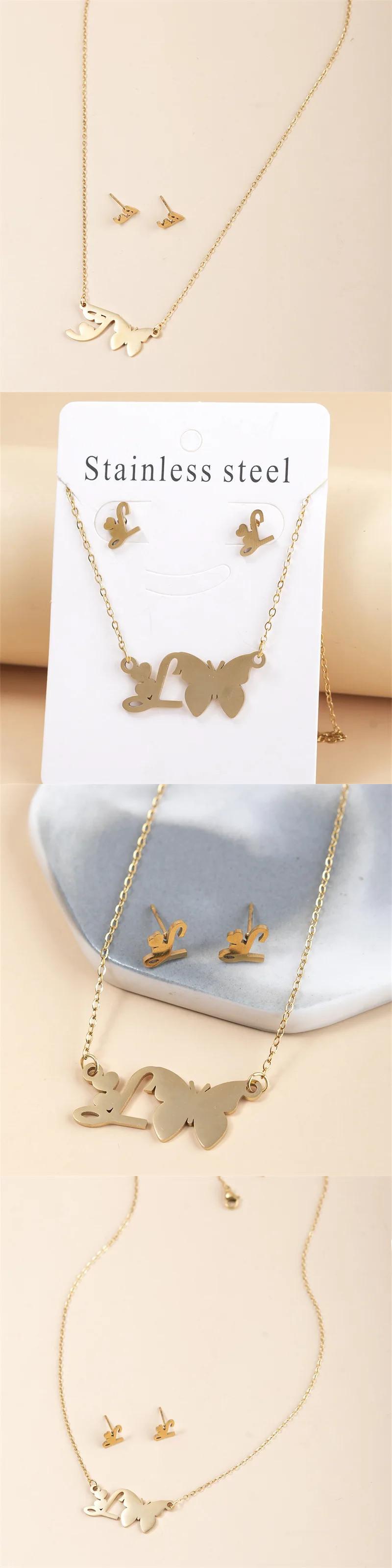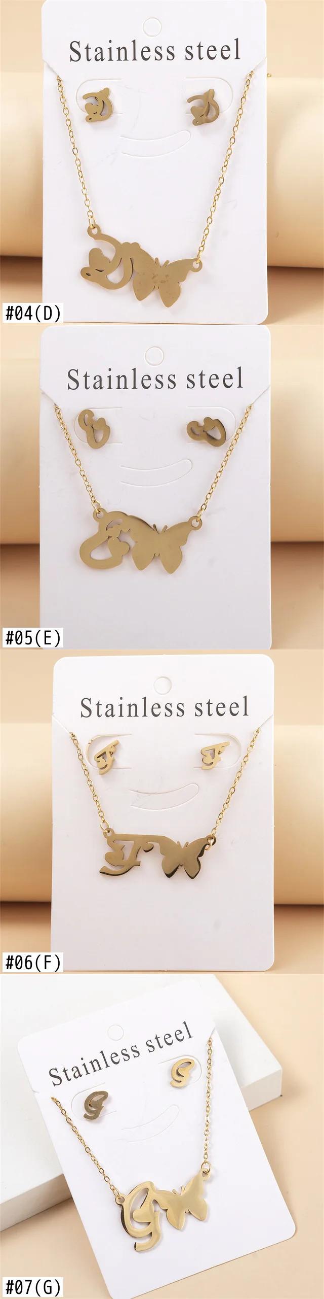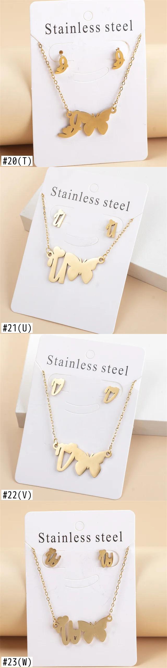 送料無料 イニシャルステンレス鋼ネックレス & イヤリングセット蝶ペンダント 26 A-Z 文字名チャームネックレスチョーカー女性ジュエリーセット レース AE778878854716368825