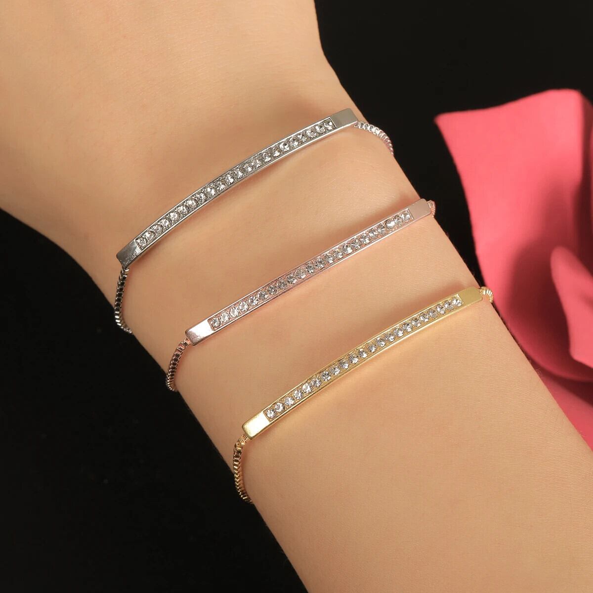 送料無料 高級ラインストーンブレスレット女性調節可能なチェーンブレスレットバングルウェディングブライダルジュエリーアクセサリー アジャスタブル AE77887882794257476