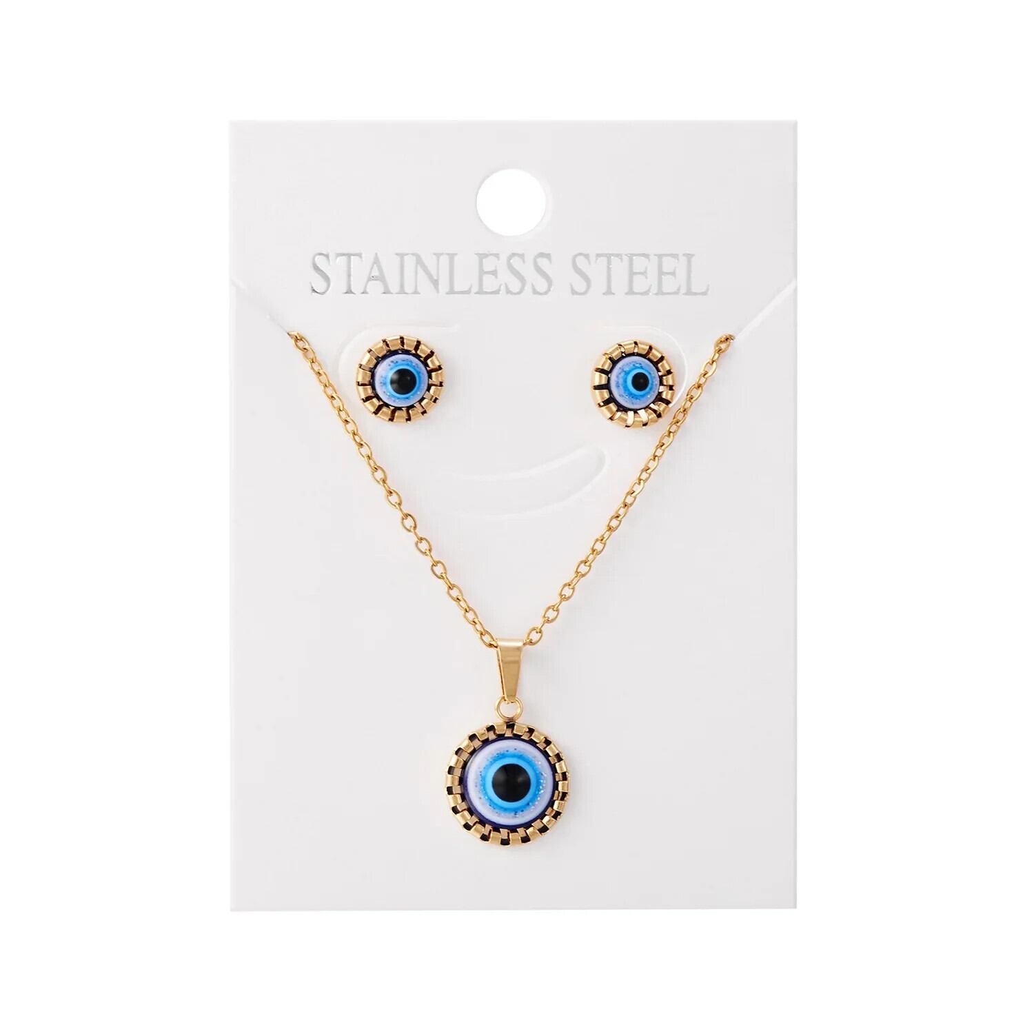 送料無料 トルコブルーアイチェーンネックレススタッドピアス目ジュエリーセット女性フェスティバルギフトアクセサリービジューОжерелье レース イヤリング リング 指輪 AE778878880952742139