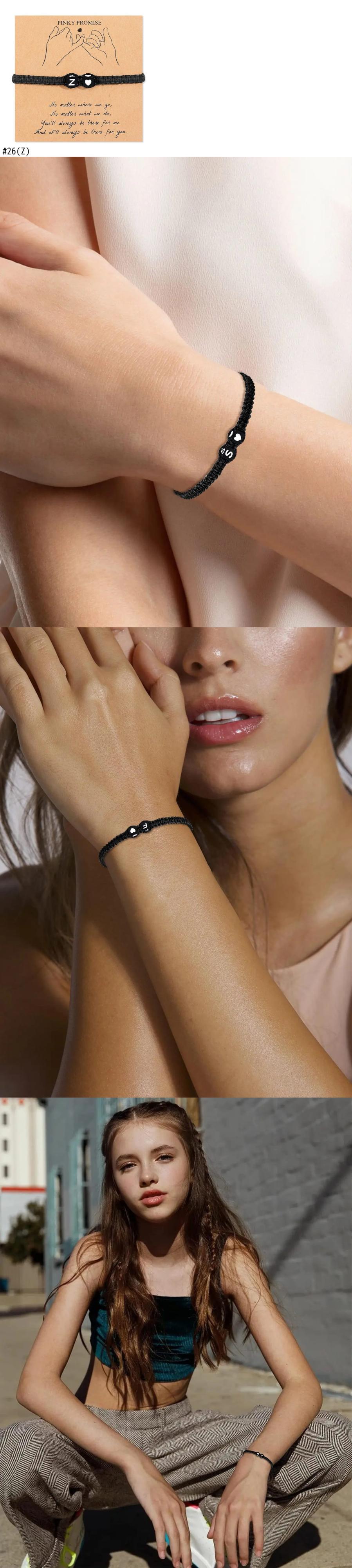 送料無料 26 文字イニシャルハートチャームブレスレット手作り調節可能な A-Z 名編組ブレスレット女性男性友情ジュエリーギフト アジャスタブル AE778878825097693347