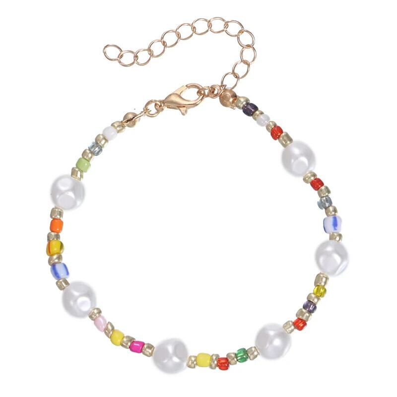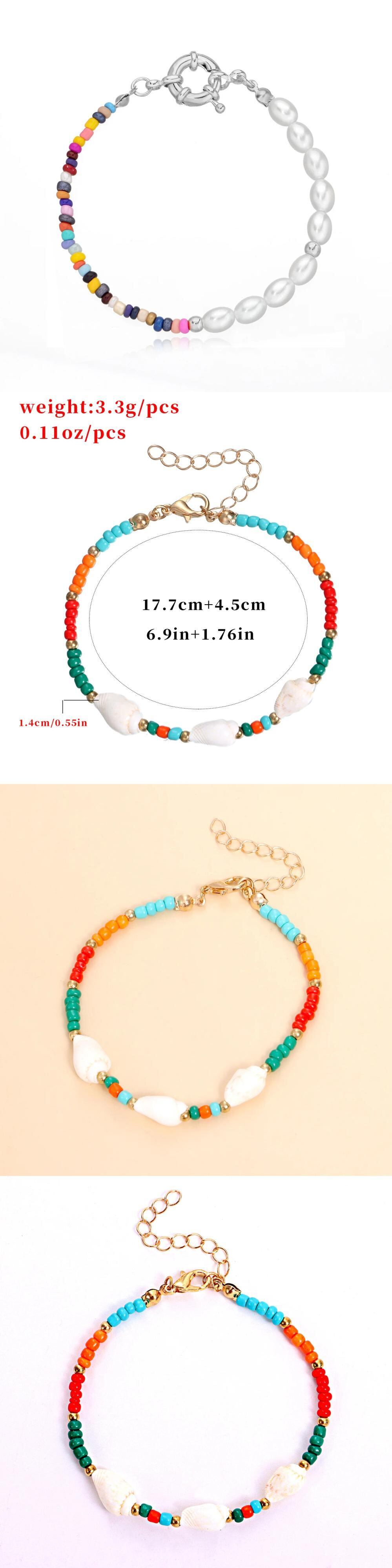送料無料 カラフルなシードビーズシェルブレスレット手作り DIY ボヘミアンオーバル模造パールブレスレット女性ビーチジュエリーパーティーギフト 真珠 AE778878824865890800