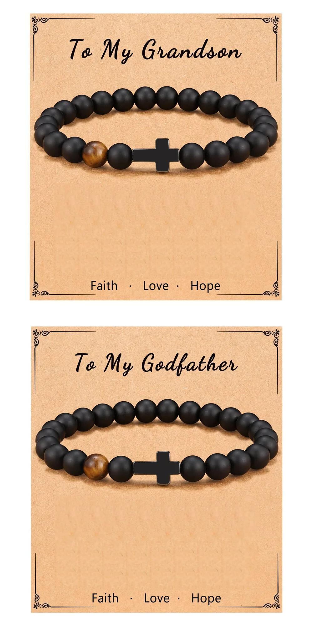 送料無料 8 ミリメートル黒ビーズチャームブレスレット男性女性カップル家族手作り弾性ブレスレットリストバンウィッシュカードジュエリーパーティー手首ギフト ブラック エラスティック 伸縮 AE77887883017449348