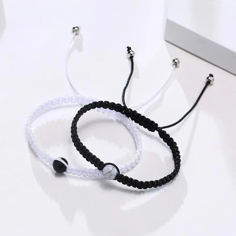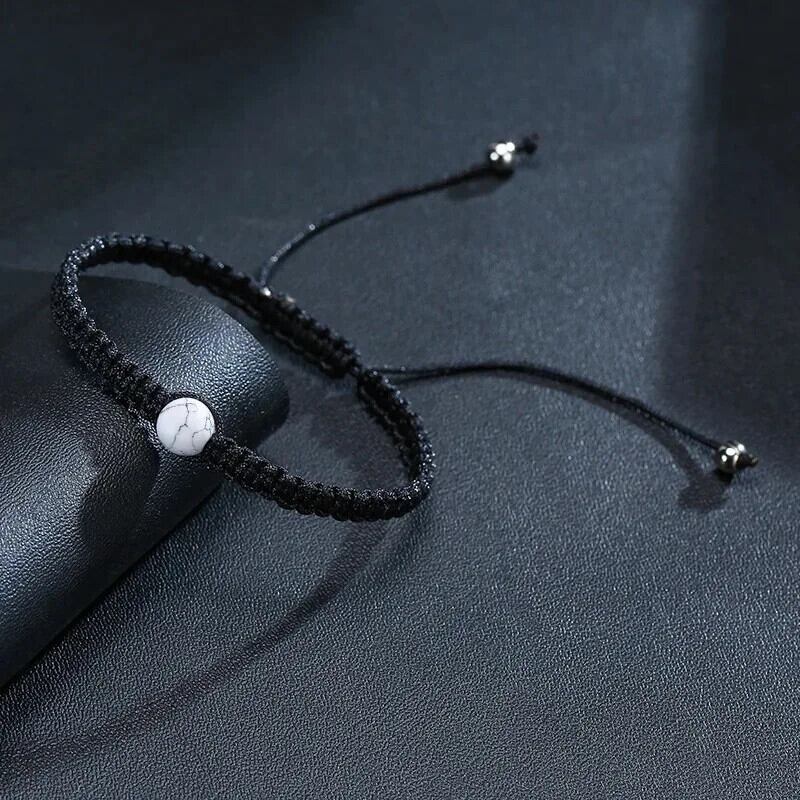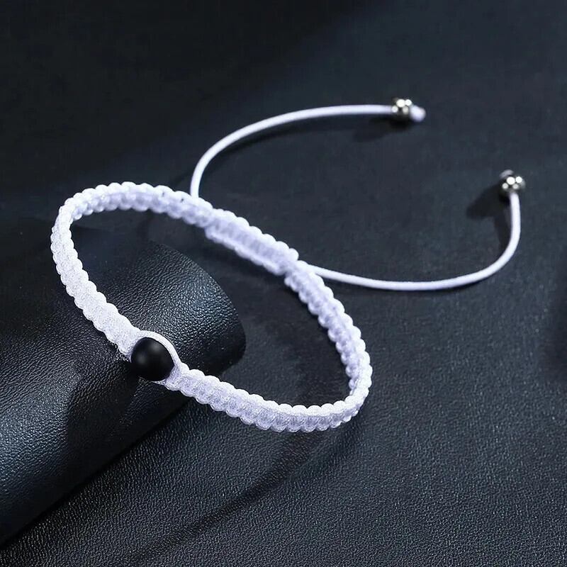 送料無料 天然石ブラックホワイト織カップルブレスレット幸運のお守りビーズ編組ロープブレスレット手作りジュエリー恋人友人ギフト ナチュラル AE778878854817376115