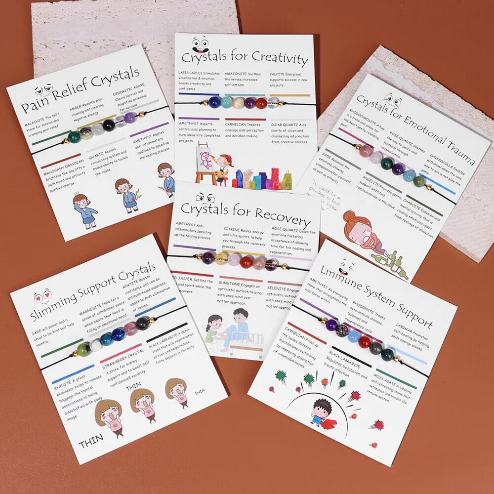 送料無料 調整可能な天然石ビーズブレスレット手作り編組ロープチャクラクリスタルビーズチャームブレスレットレイキ幸運ジュエリーウィッシュカード アジャスタブル ナチュラル AE778878855638010379