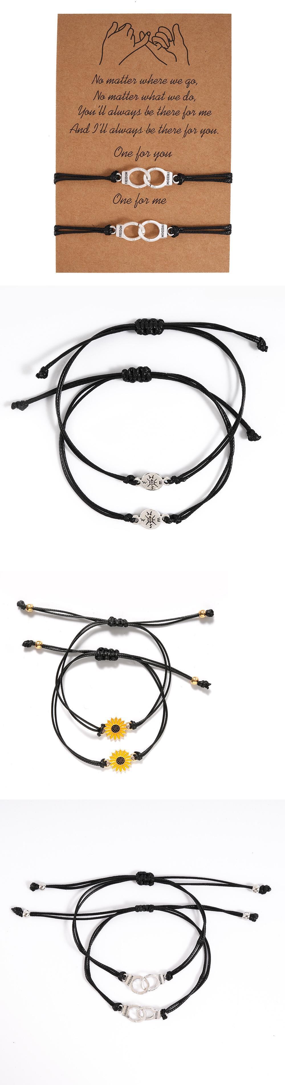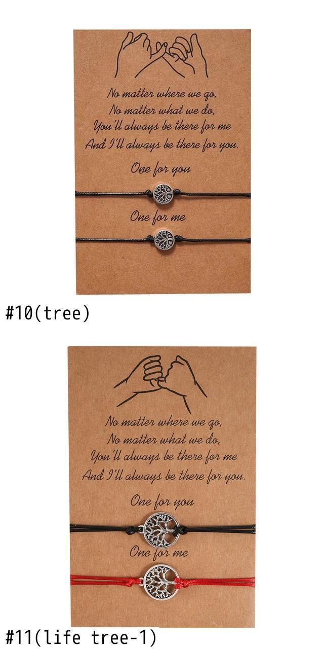 送料無料 2 ピース/セットハートライフツリーチャームブレスレットワンユーワンミー黒文字列編組カップルブレスレット男性女性ウィッシュカード ブラック AE778878829603486819