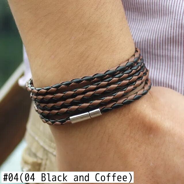 送料無料 レトロラップロングレザーブレスレットメンズ手編みツイスト Pu レザーブレスレット男性女性ビーチジュエリーギフト AE778878869881573199
