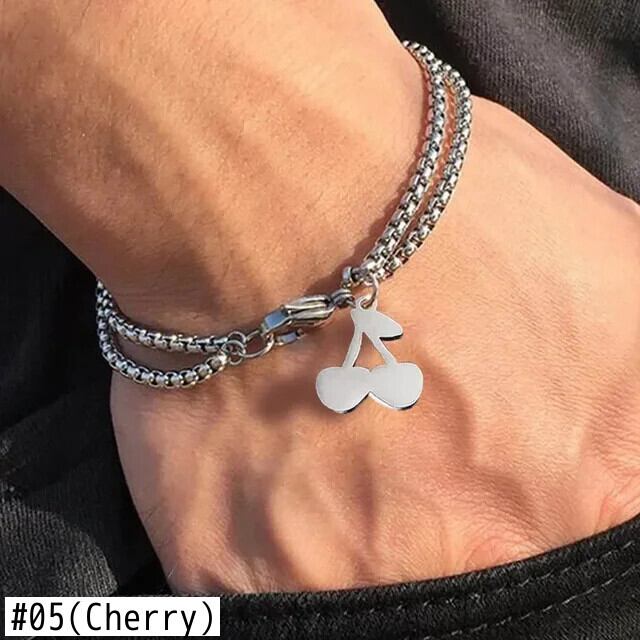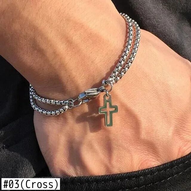 送料無料 ダブルチェーンステンレス鋼ブレスレットクロスハート蝶チャームブレスレット男性イニシャルバングルジュエリー AE778878898261289432