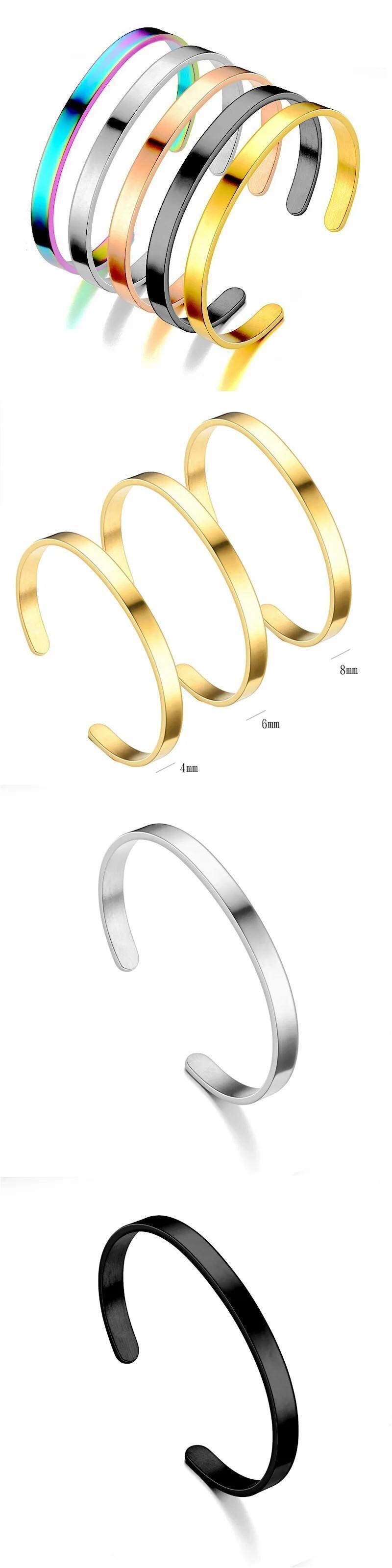 送料無料 スムーズな C シェイプ 4 ミリメートル 6 ミリメートルオープンステンレス鋼ブレスレット男性女性トレンドバングルカップルカフブレスレットジュエリー Браслет AE778878888880430576