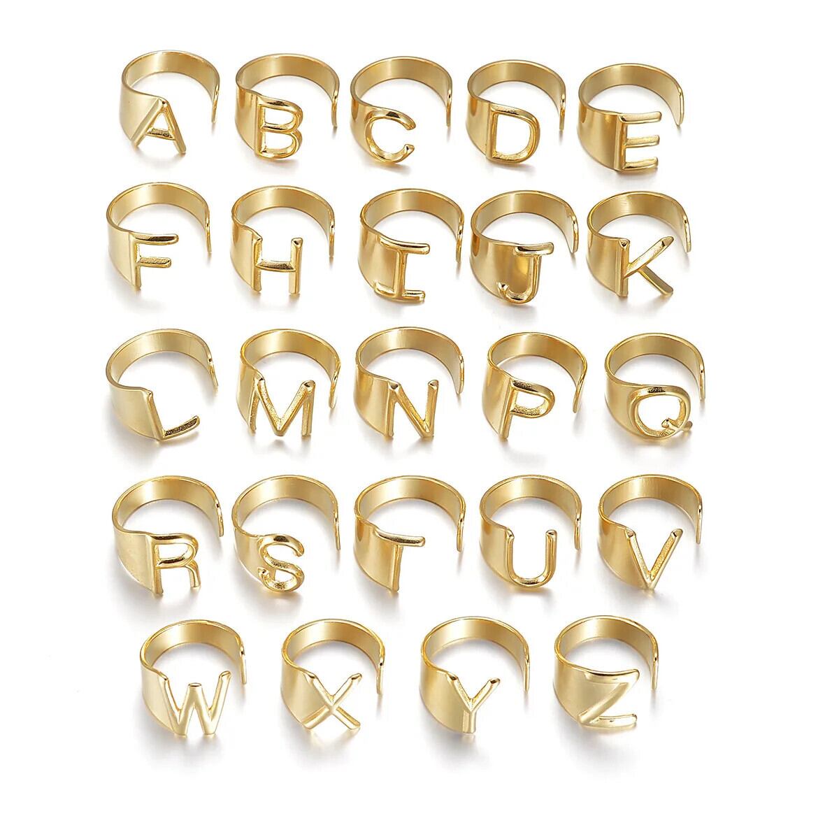 送料無料 ステンレス鋼 A-Z 26 文字イニシャルリング女性トレンディな名前アルファベットチャンキー調節可能な指パーティージュエリー Кольцо アジャスタブル 指輪 AE778878848829185658