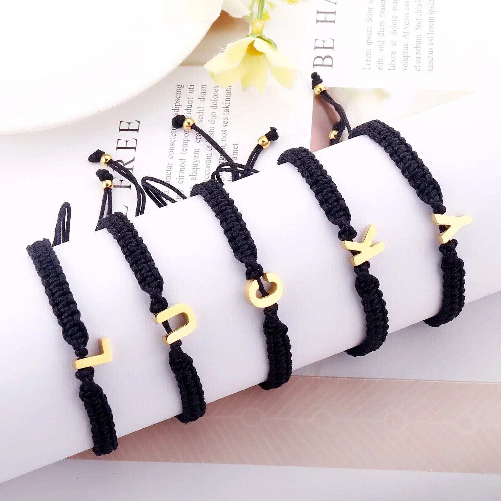 送料無料 ステンレス鋼 A-Z 26 文字チャームブレスレット女性男性名前文字イニシャルブレスレット幸運手作りロープ編組バングルギフト AE778878899408324834