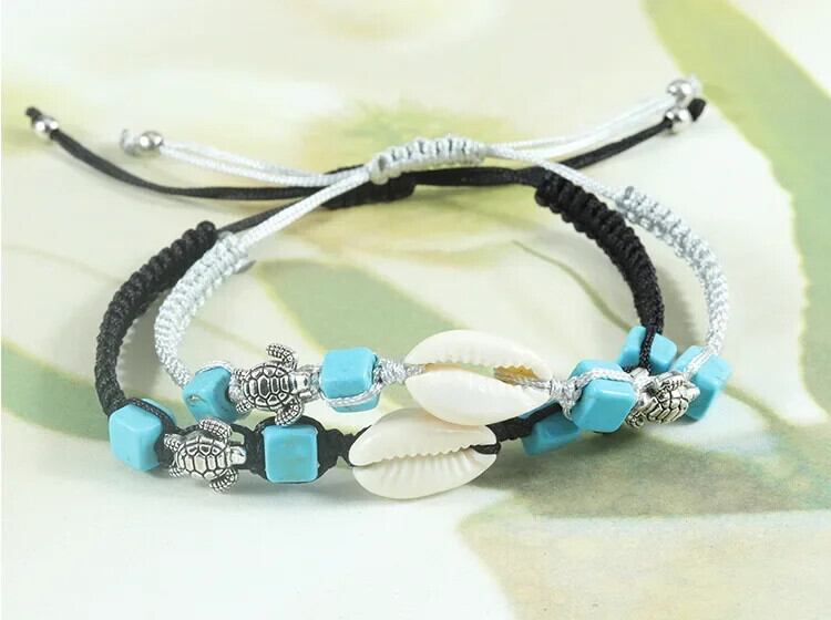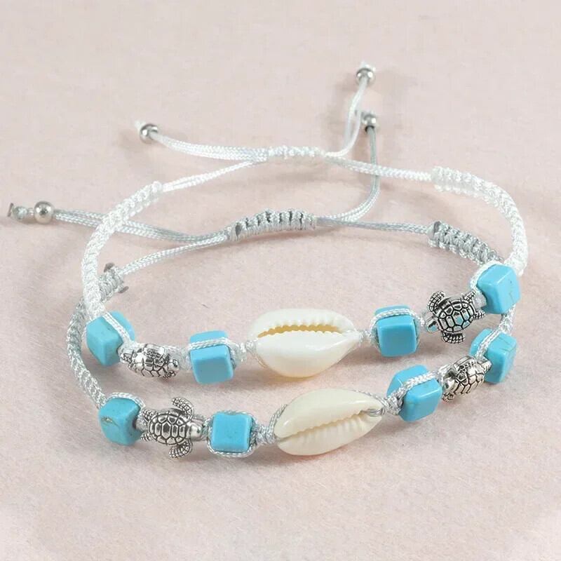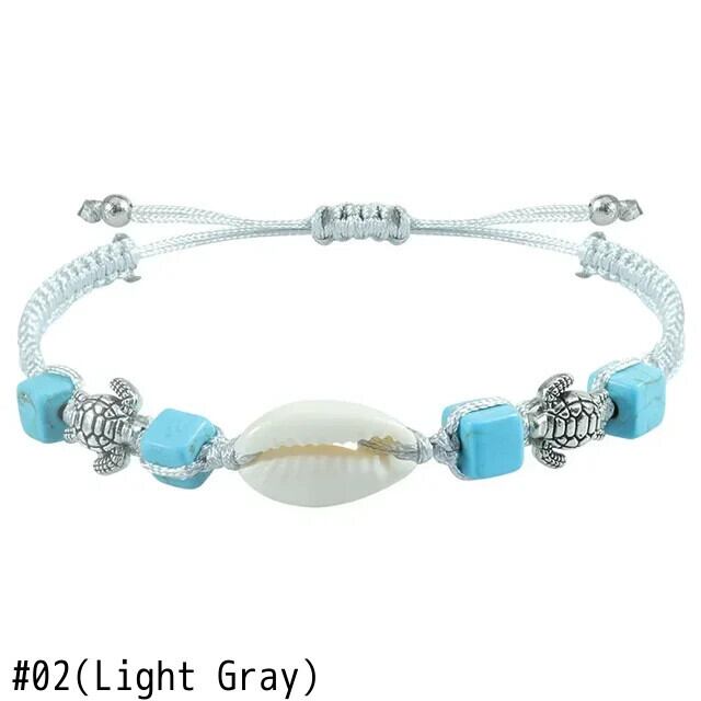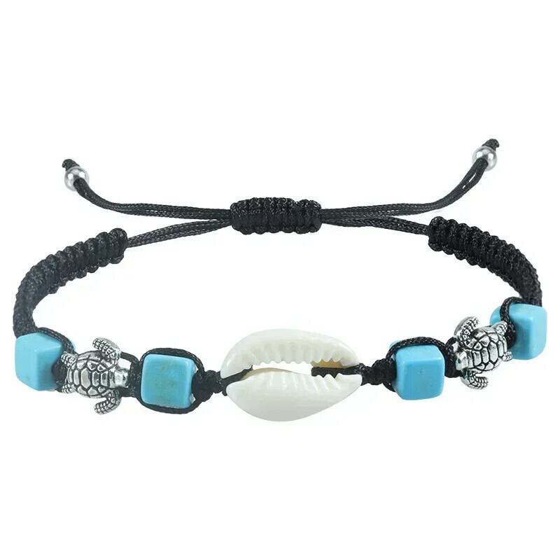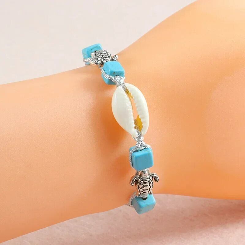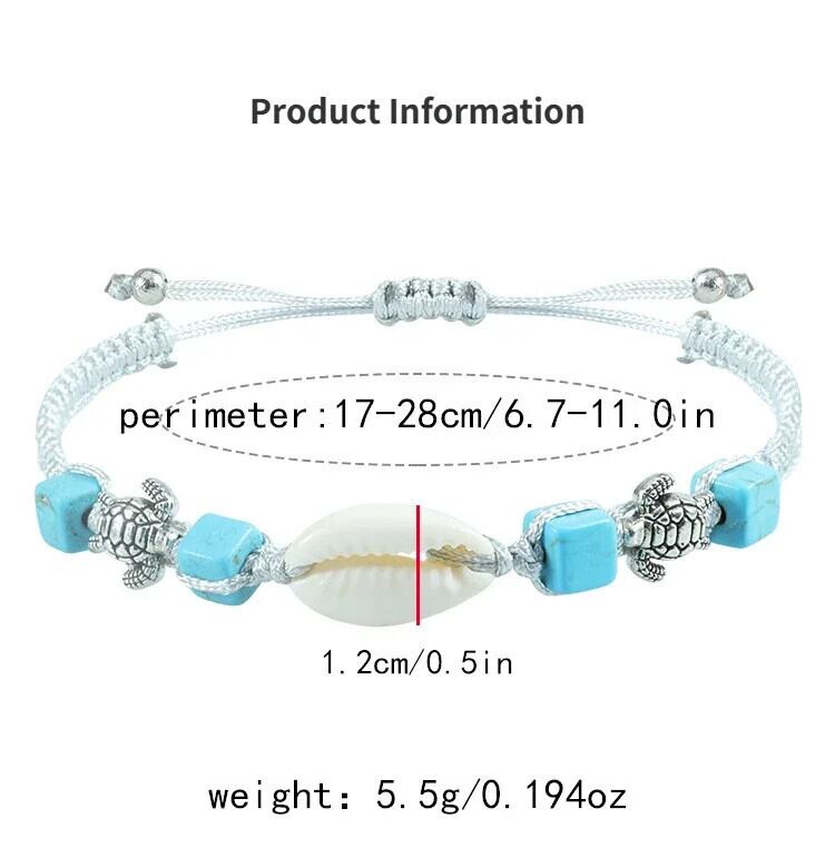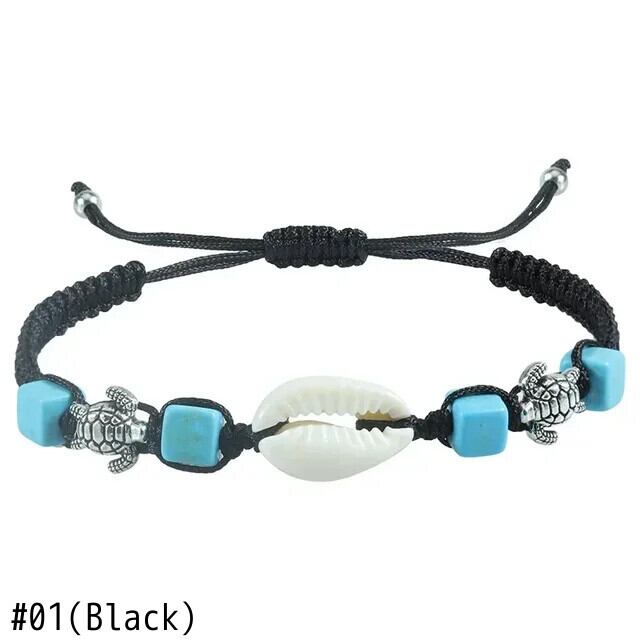 送料無料 手作りウミガメの殻ビーズブレスレット女性男性天然ターコイズ石編組ロープブレスレットビーチジュエリーギフトチャーム ナチュラル AE77887881292709751