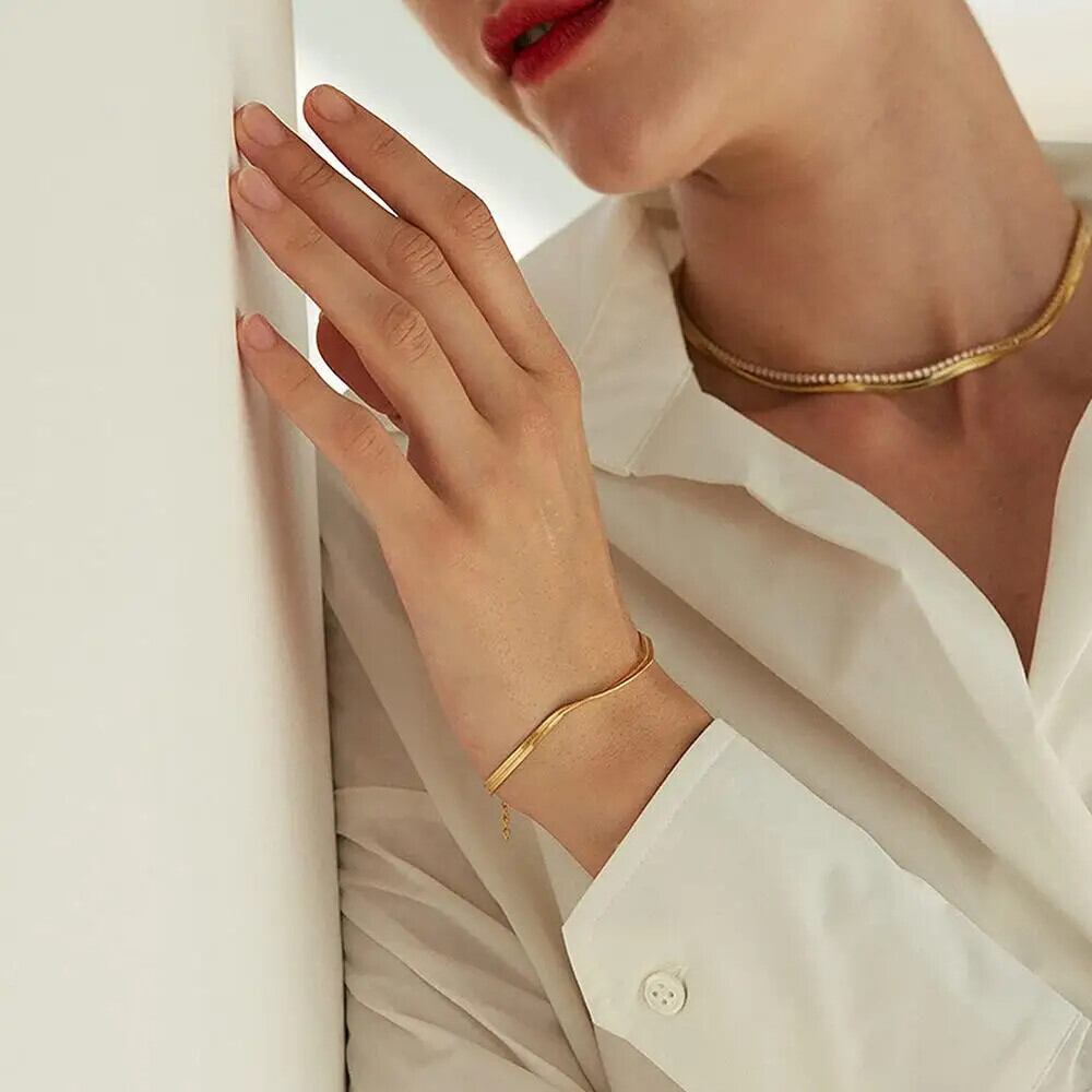 送料無料 女性トレンド Clic スネークチェーンブレスレットシルバーゴールドカラー幅 3/4 ミリメートルステンレス鋼チェーンブレスレット女性ジュエリーギフト 銀 AE778878824495030296