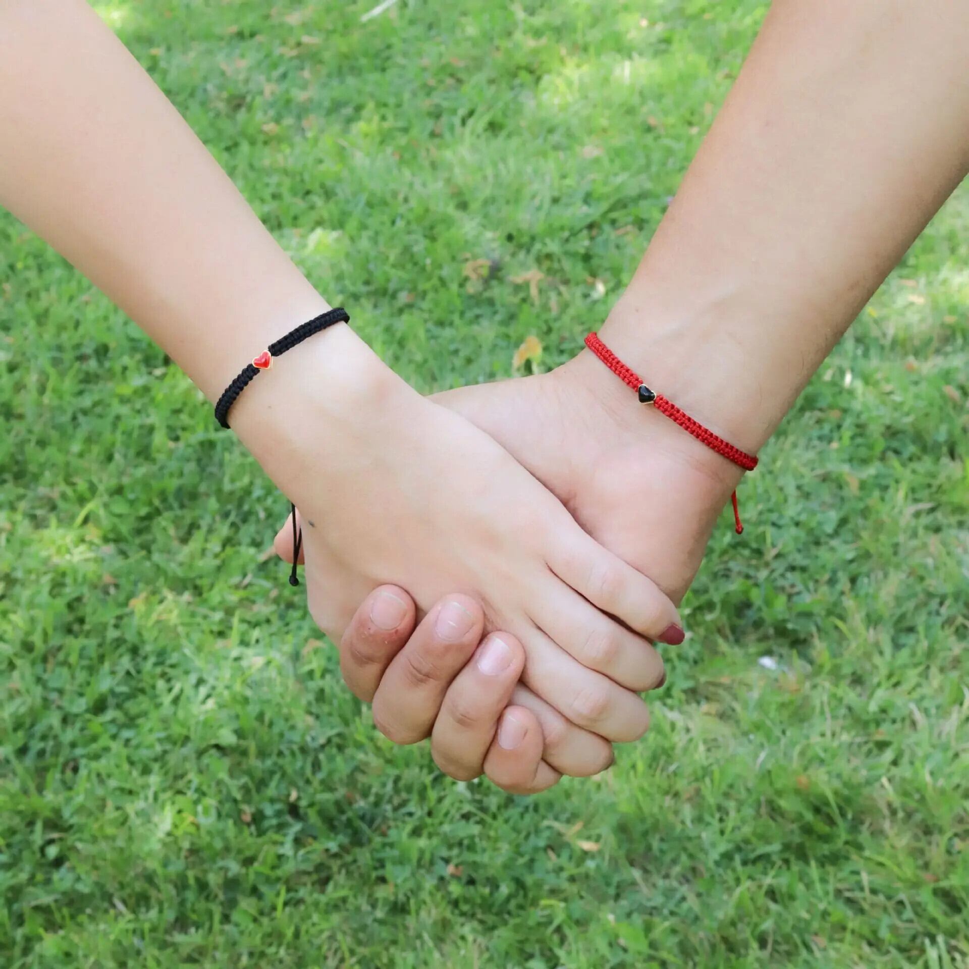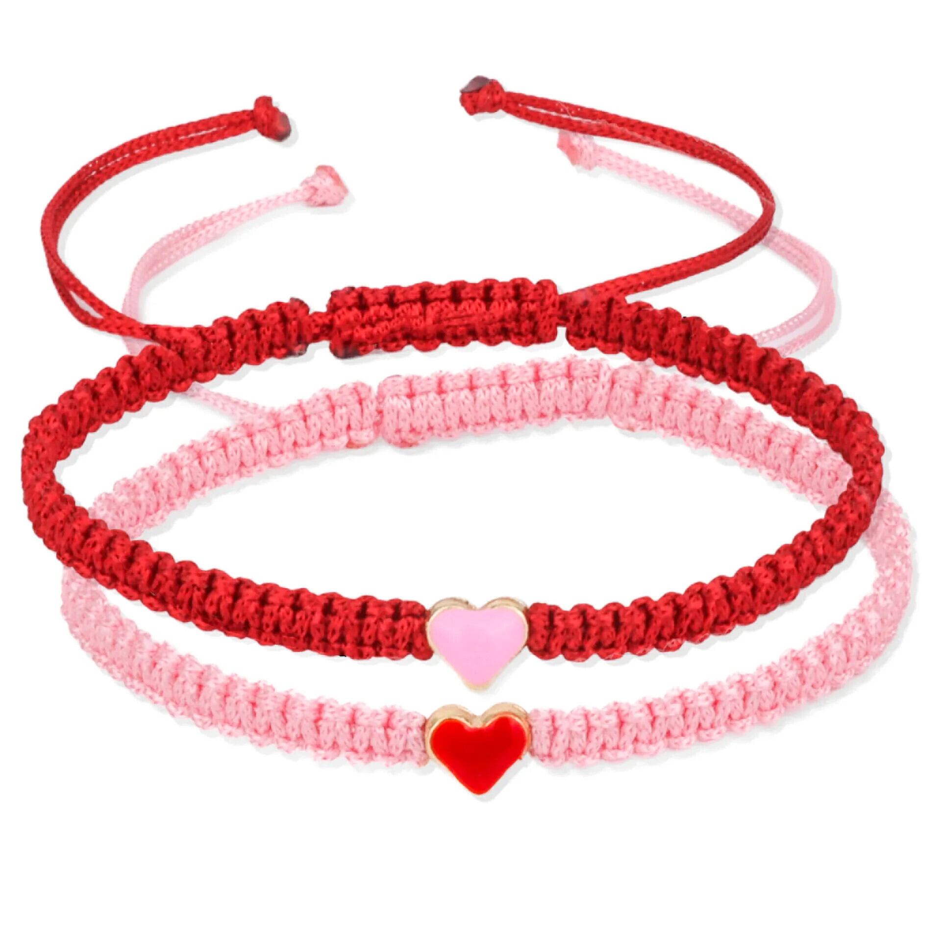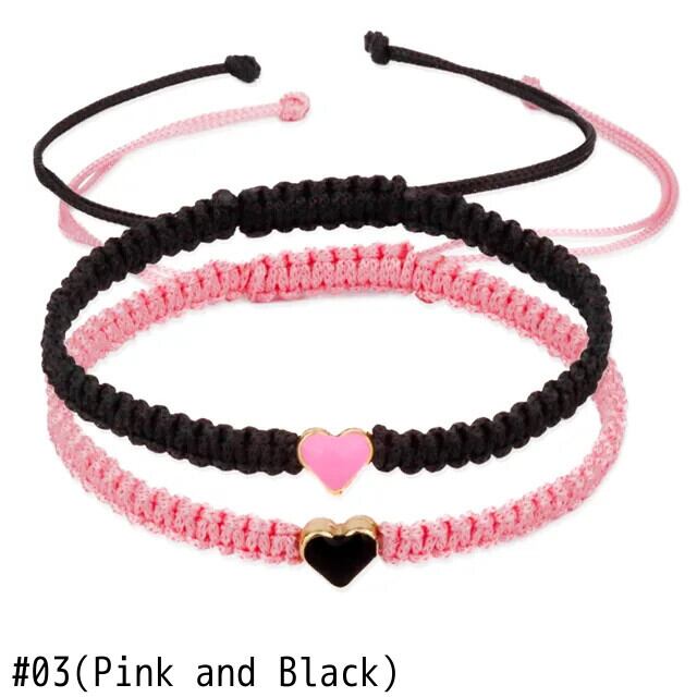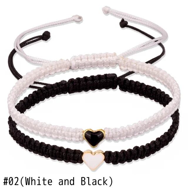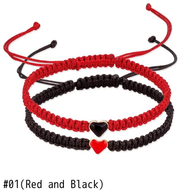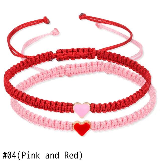 送料無料 2 ピース/セットカップル合金ラブハート編組ロープノットブレスレット手作りエナメルラッキーブレスレット調節可能な友情恋人ジュエリー アジャスタブル AE778878817370718058