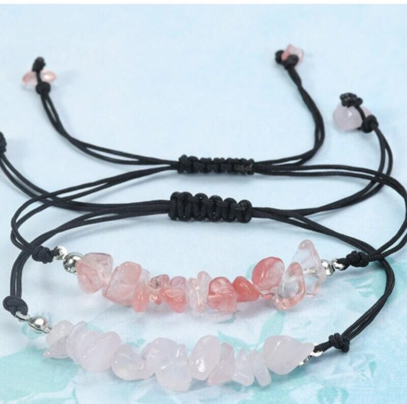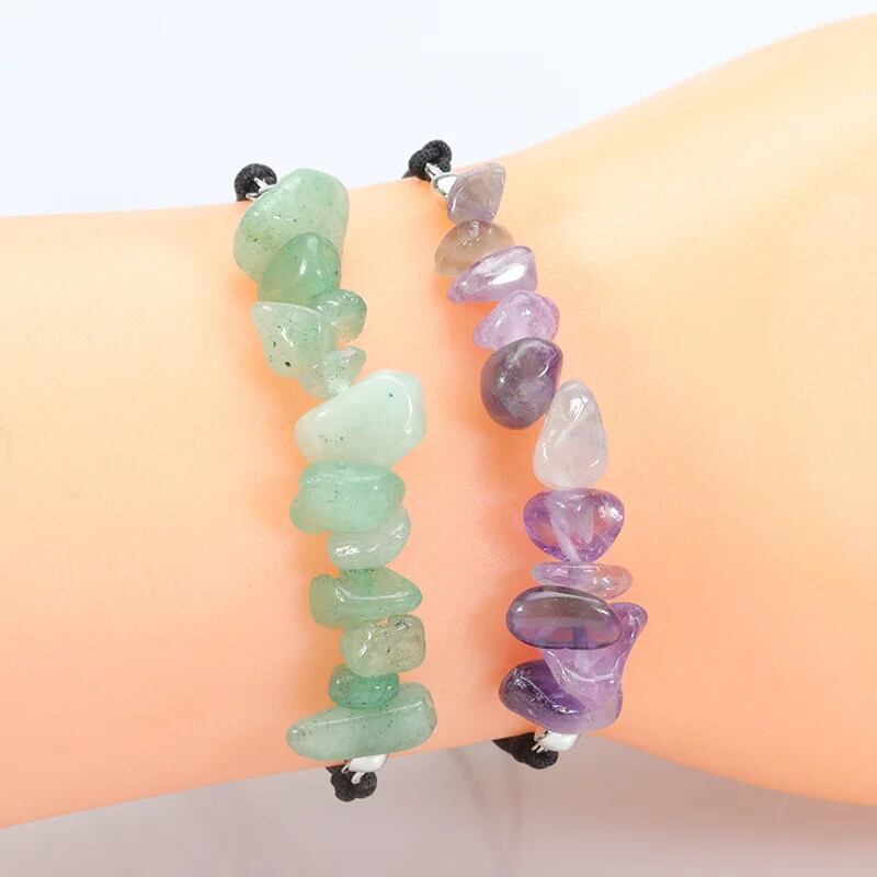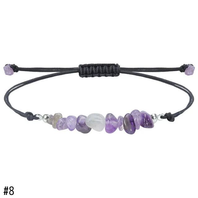 送料無料 手作りクリスタル砂利ビーズ調節可能なブレスレット天然石アメジストチップビーズ編組ロープブレスレット女性ジュエリー アジャスタブル ナチュラル 紫水晶 AE778878873017861379