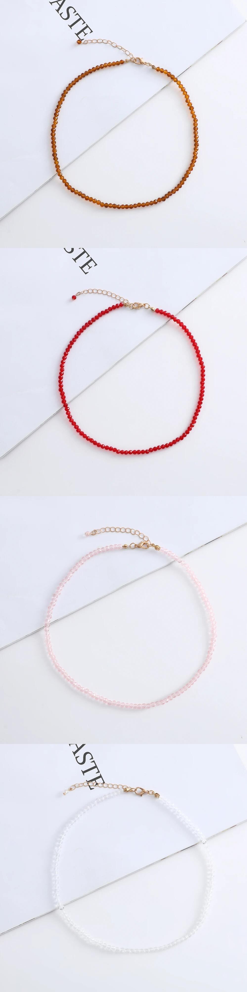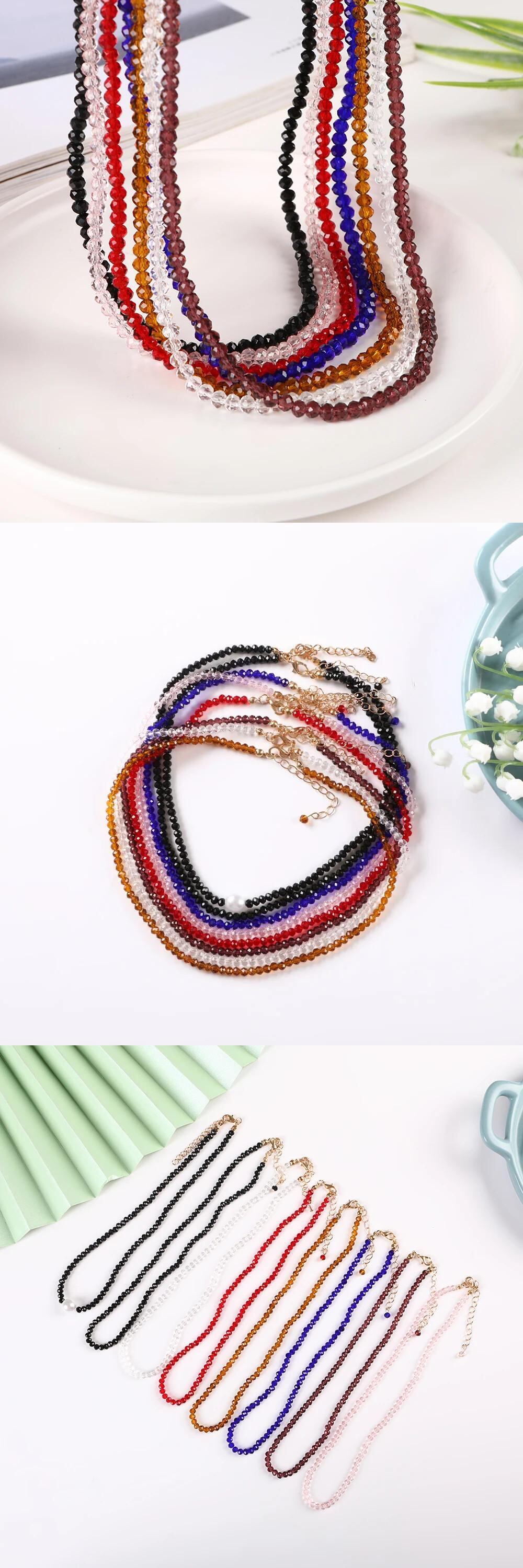 送料無料 4 ミリメートル高級クリスタル Gl ビーズチェーンチョーカーネックレス模造パールショートカラーチャームパーティービーチジュエリーギフトビジュー レース 真珠 AE778878897385048069